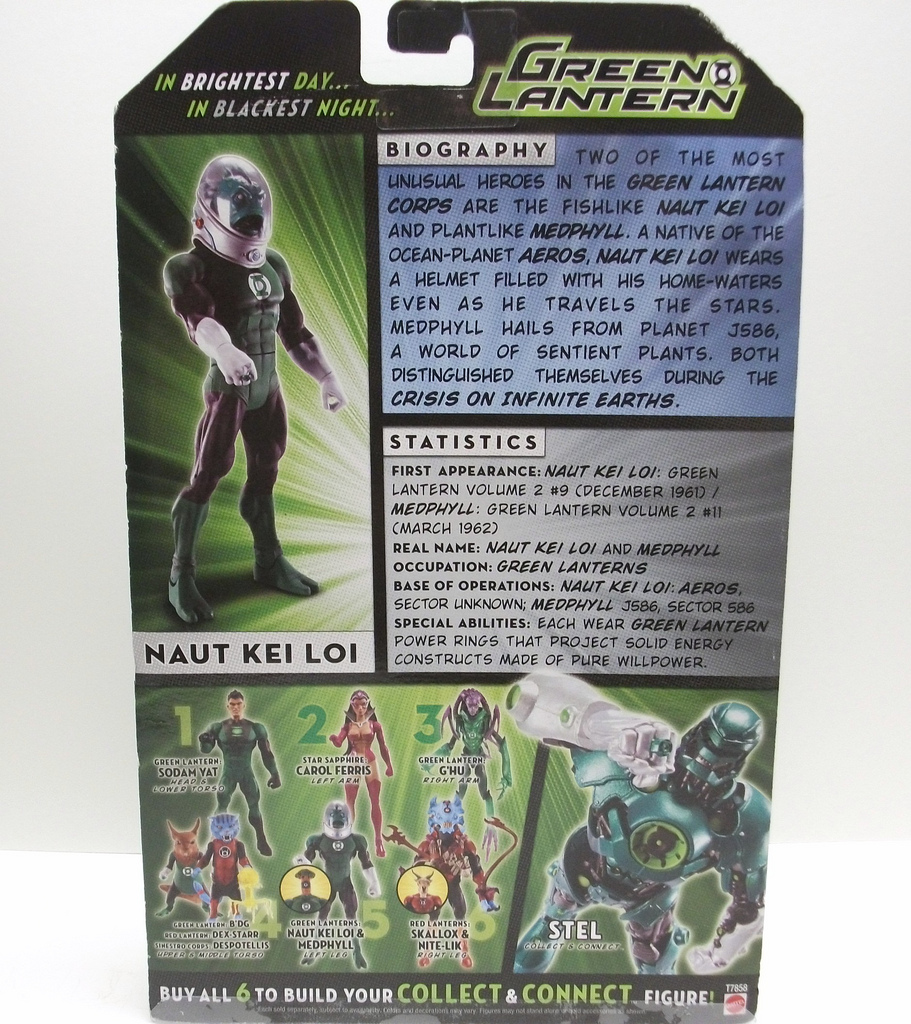 Description: A box with a picture of a man in a green suit and helmet on it's back side.