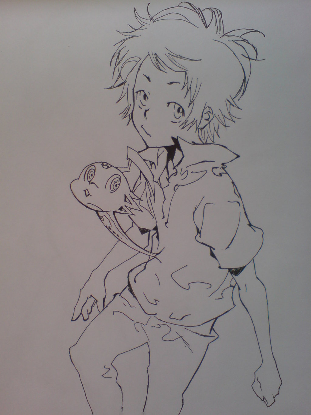 Description: A drawing of a boy holding a doll in his arms and a girl holding a doll in his arms.