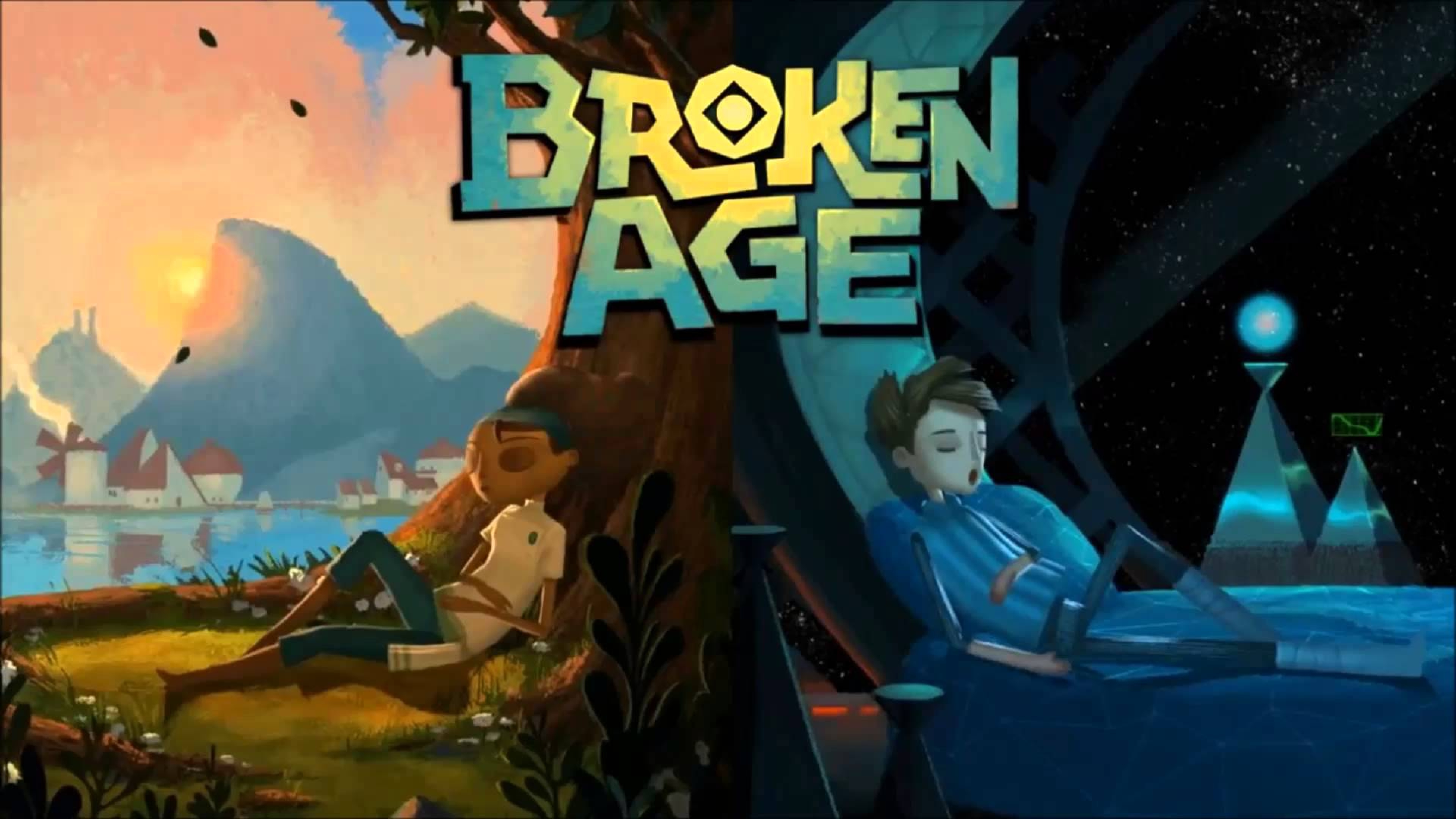 Description: A boy is sitting in a chair in front of a tree and a mountain with a sky background and a broken age title.
