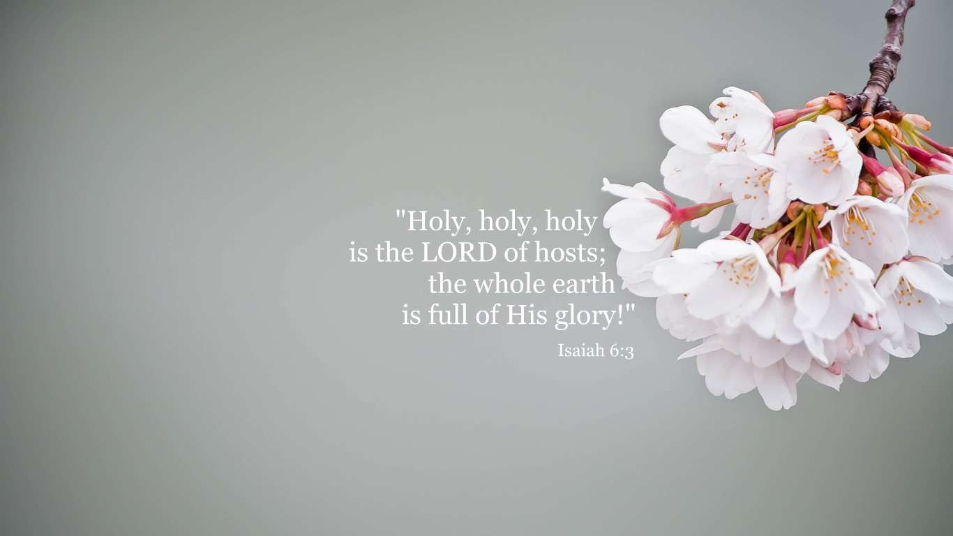 Description: A branch with white flowers with a bible verse on it that reads.