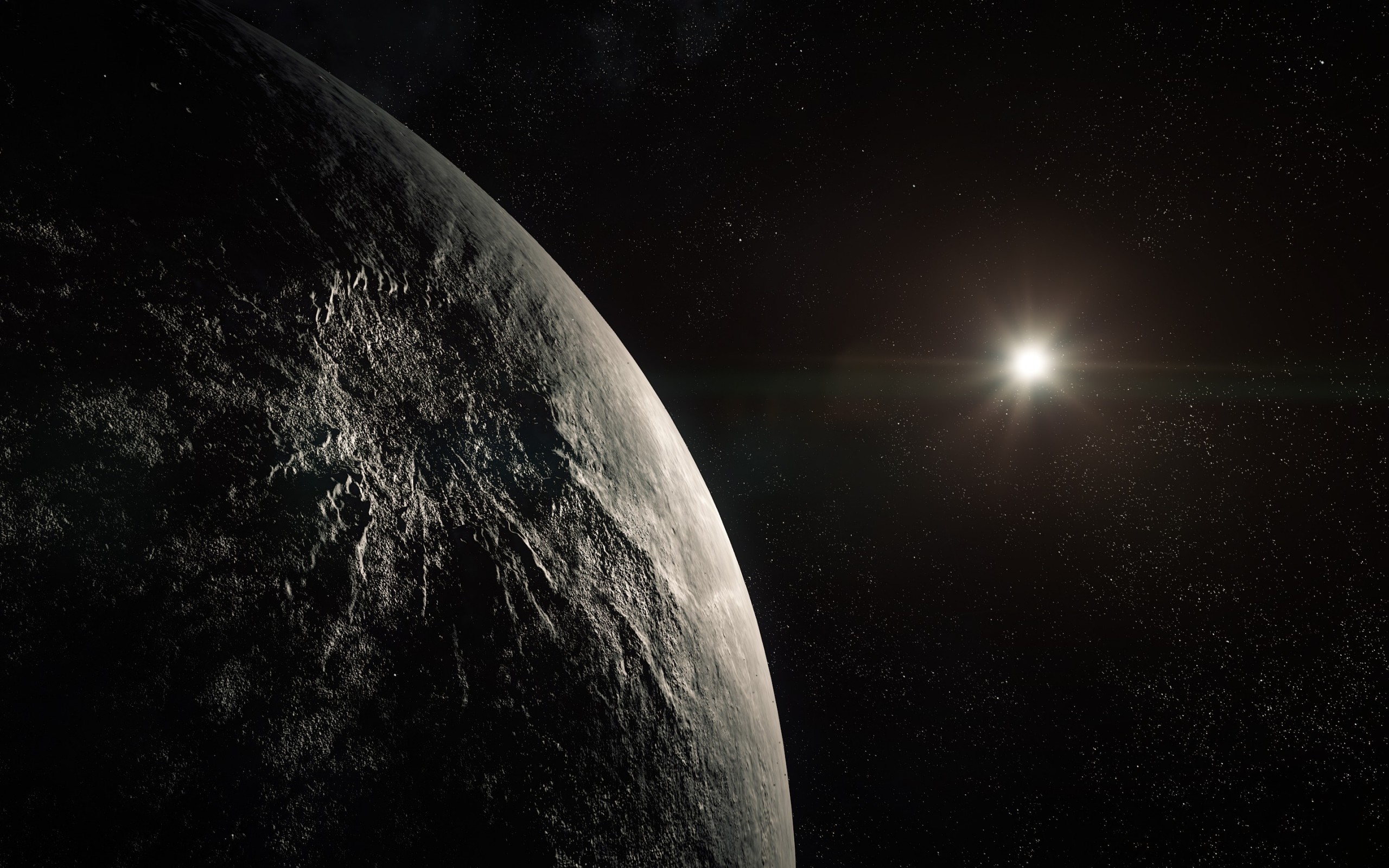 Description: A bright light shines on the surface of the earth's surface as it is surrounded by stars.