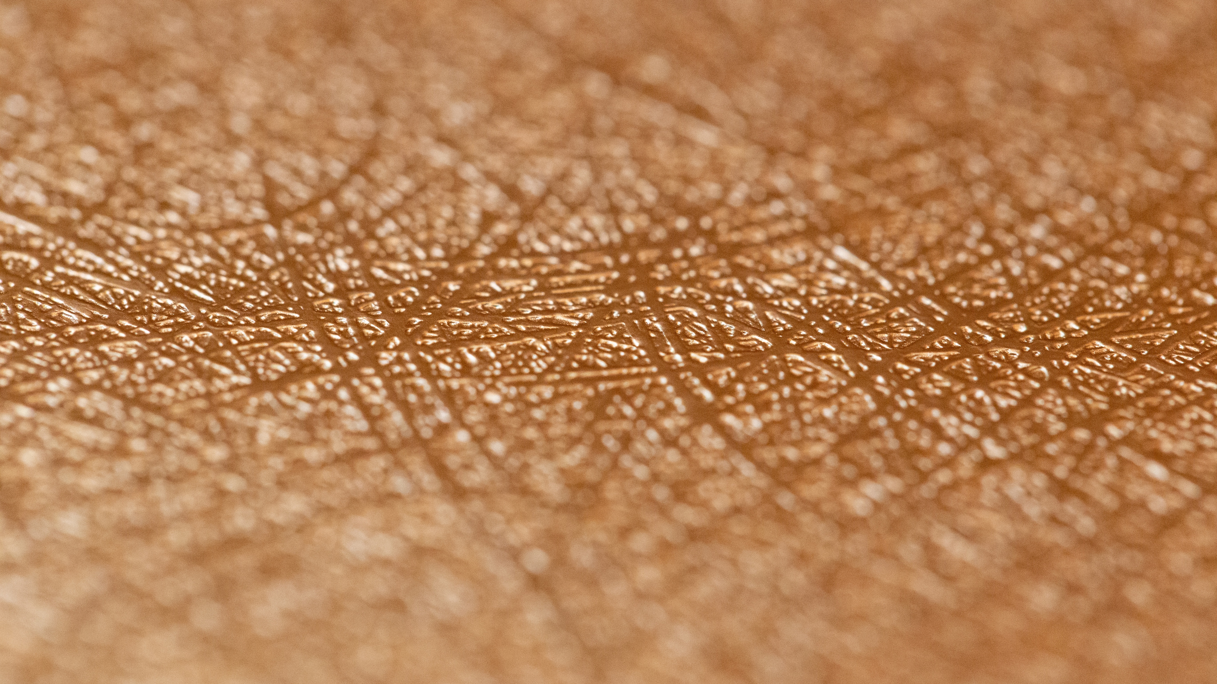 Description: A close up of a brown leather textured surface with a slight pattern of lines and dots on it.
