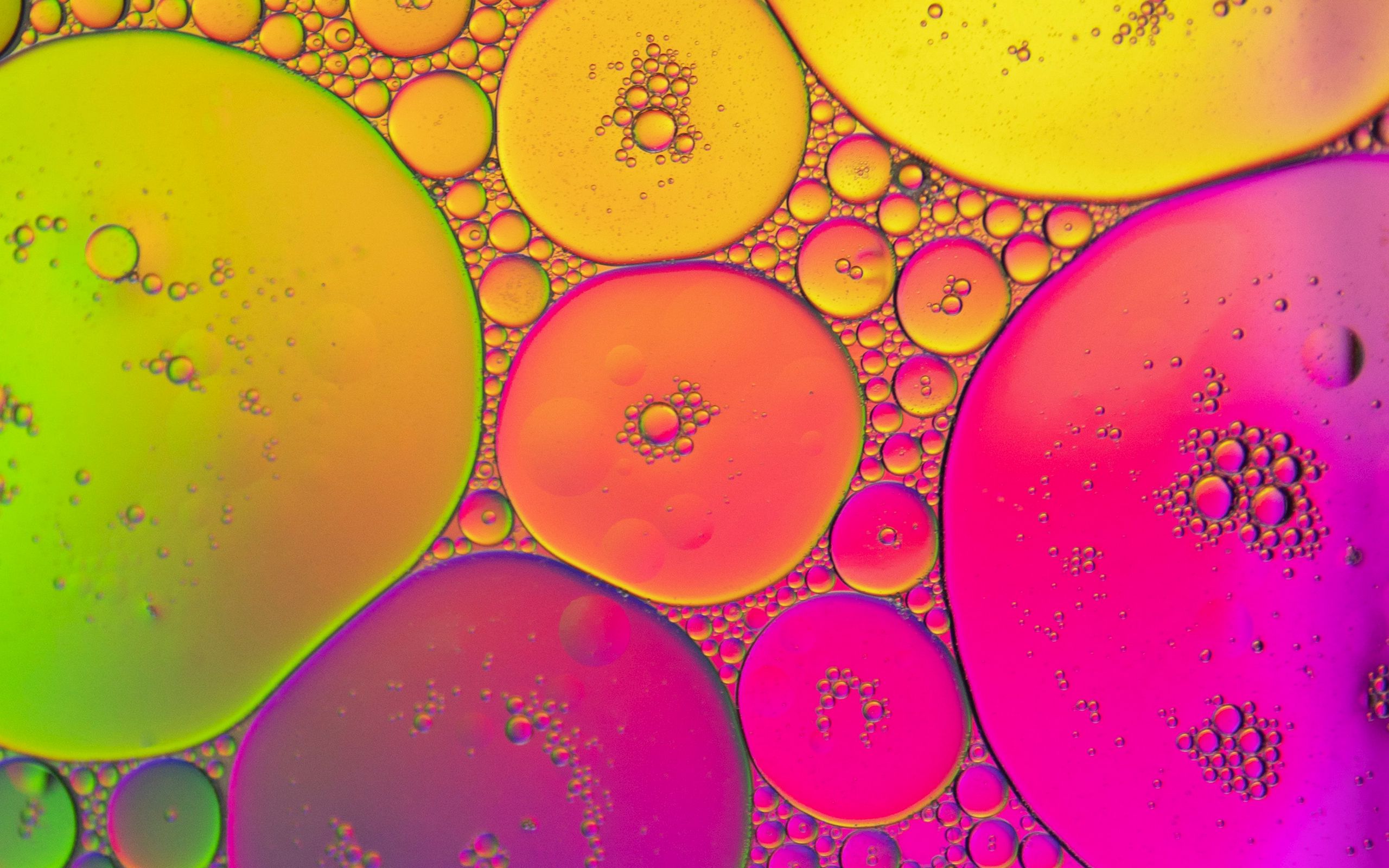 Description: A close up of a liquid filled with bubbles of different colors and sizes.