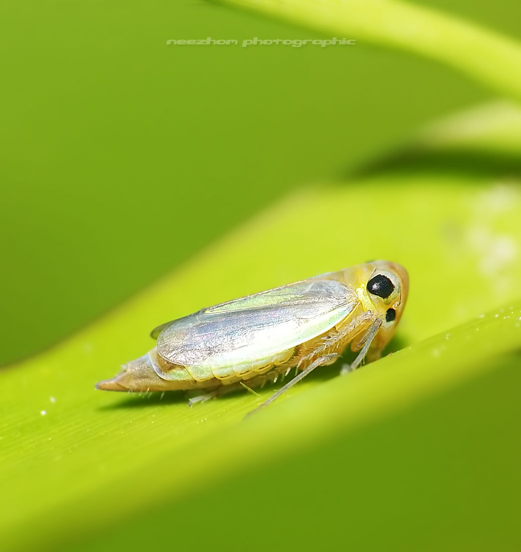 Description: A bug is sitting on a green leaf in the sun light of the day.