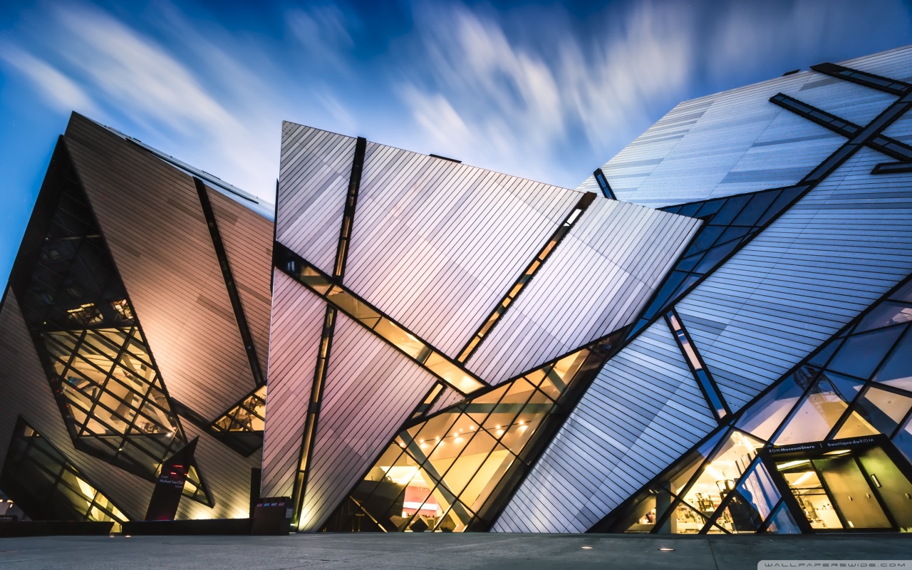 Description: A building with a lot of windows and a sky background with clouds in the background and a blue sky with white clouds.