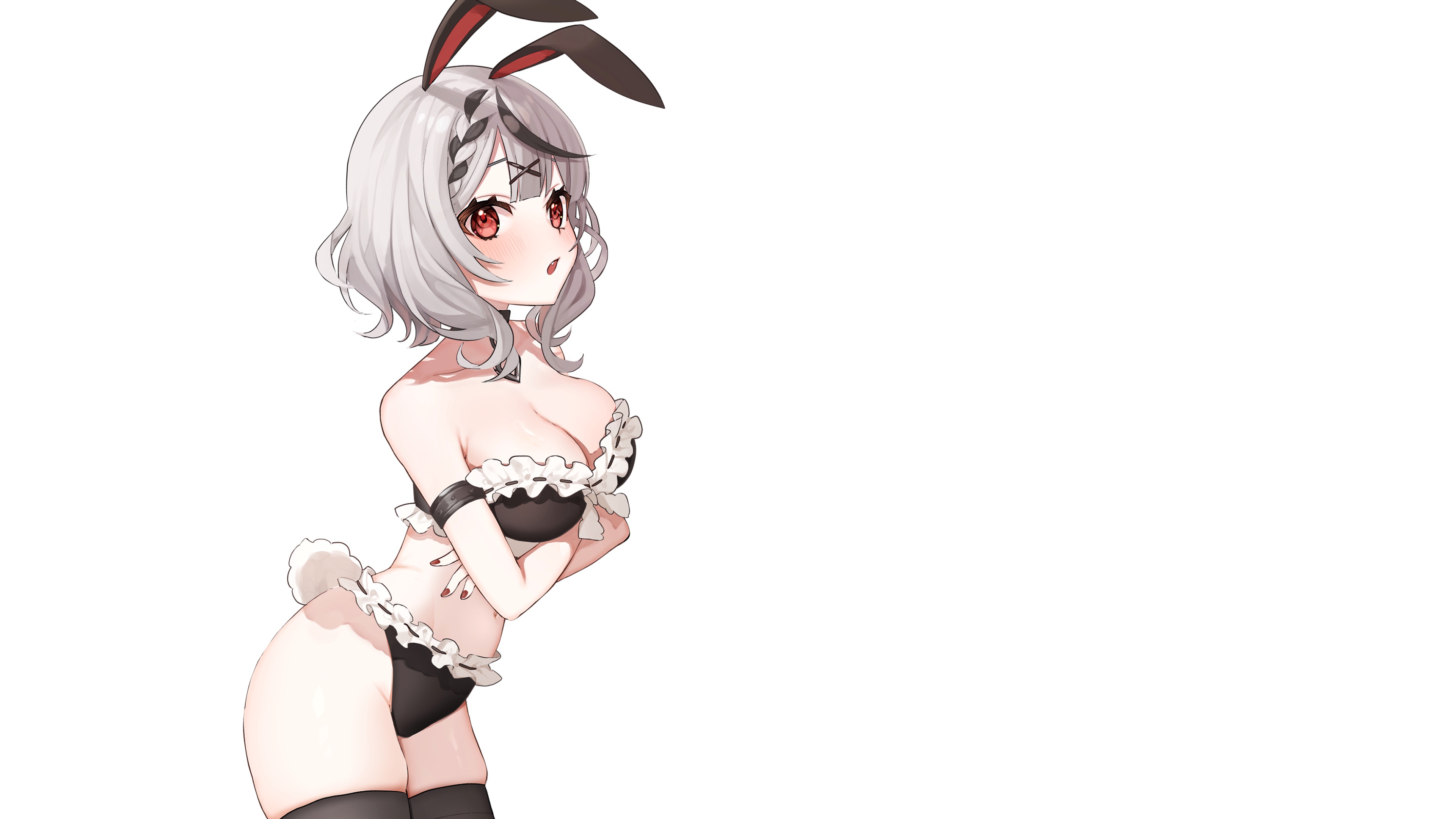 Description: A woman in a bunny costume is standing with her hands on her hips and a bunny ears on her head.