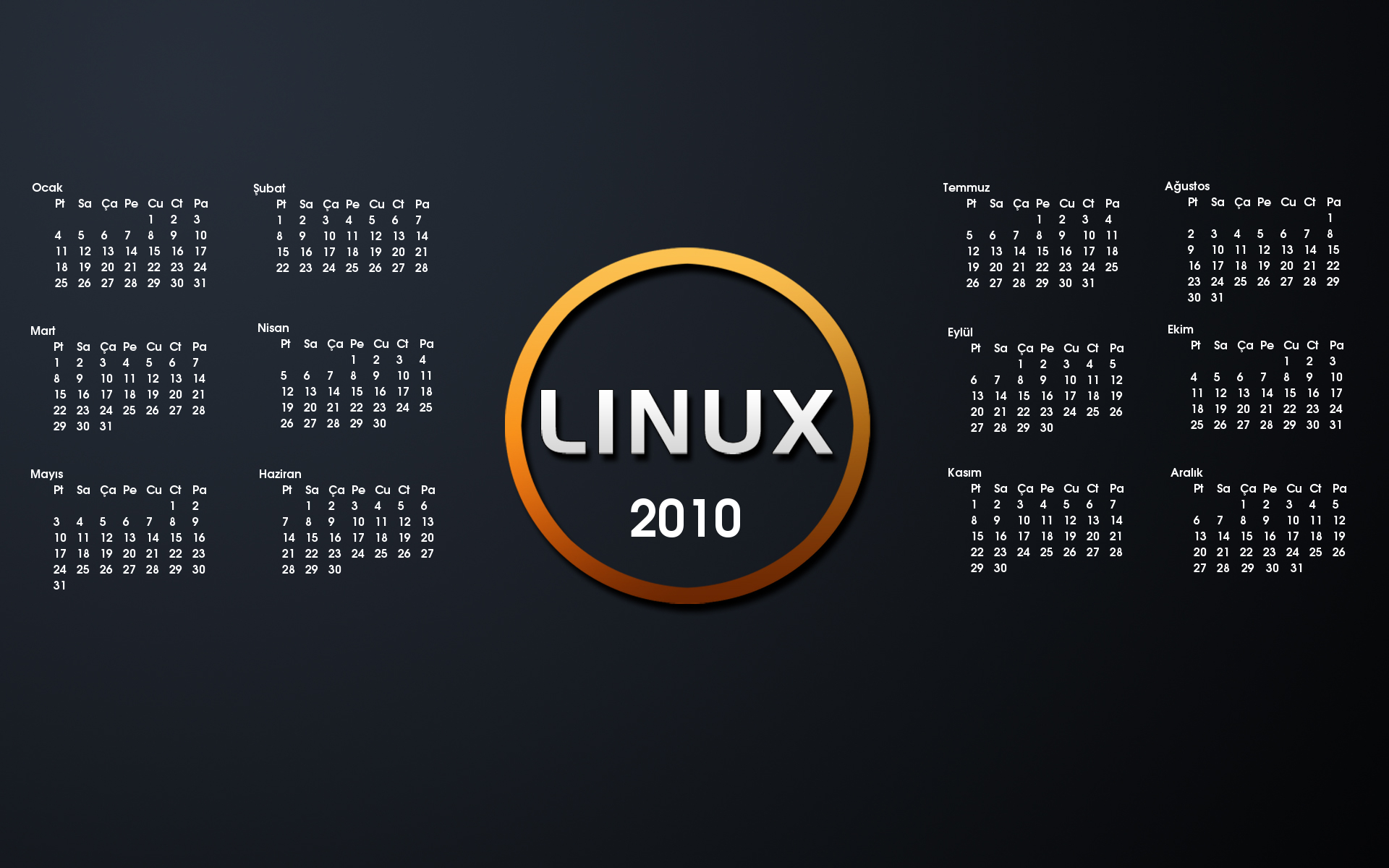 Description: A calendar with a circle in the middle of it and a linux logo on it.