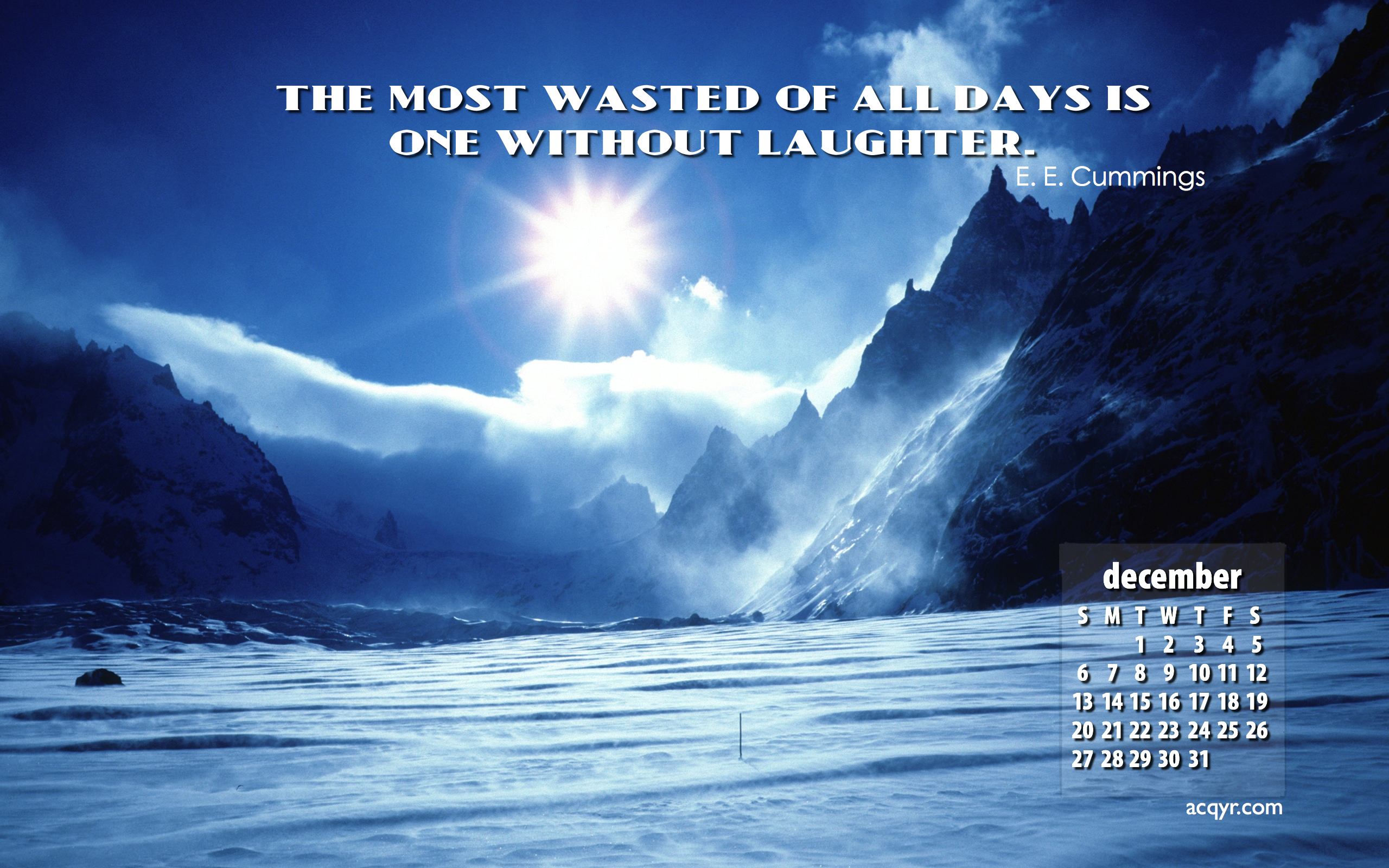 Description: A calendar with a picture of a mountain and a sky background with clouds and sun in the middle of the picture.
