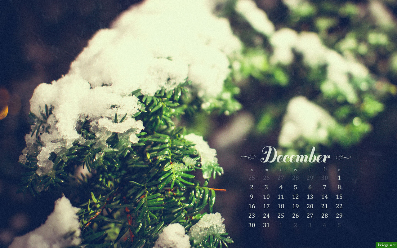Description: A calendar with a tree branch covered in snow and snow flakes on it's side.