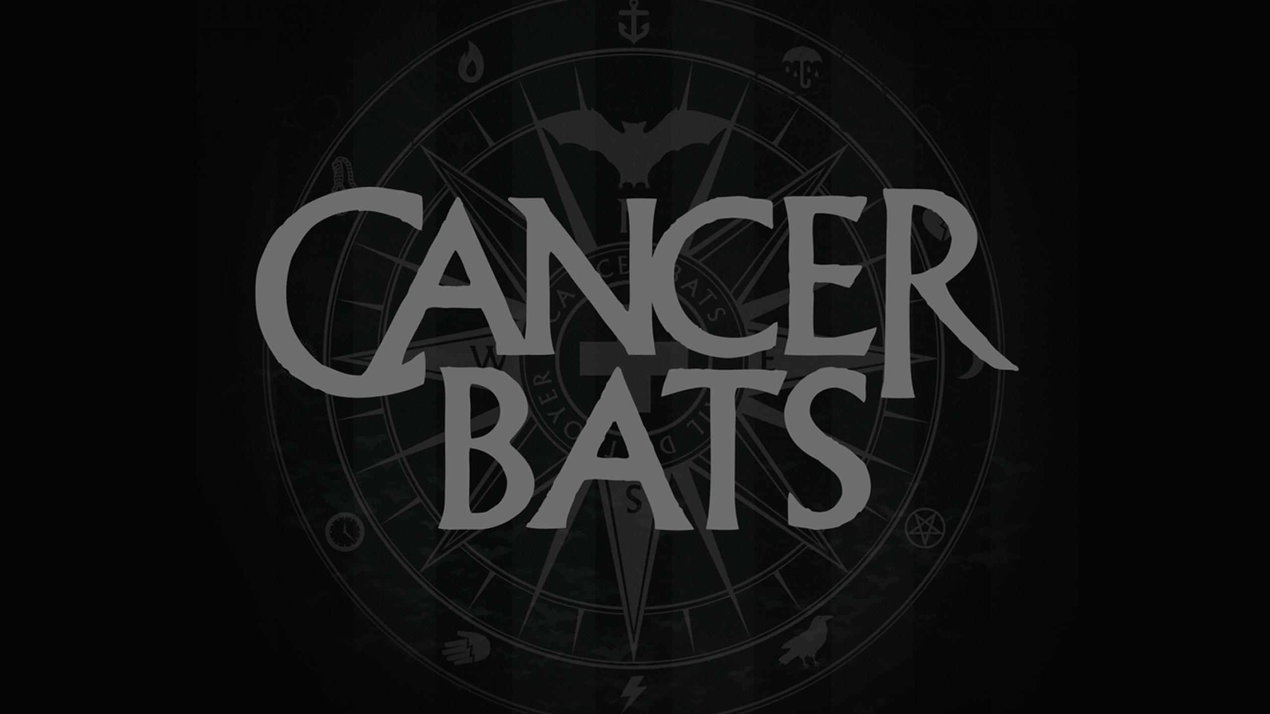 Description: A clock with the words cancer bats on it in a dark background with the words cancer bats written in white.