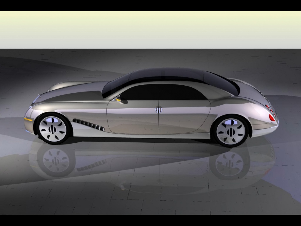 Description: A car is shown in a white and black photo with a reflection on the floor and a black and white background.