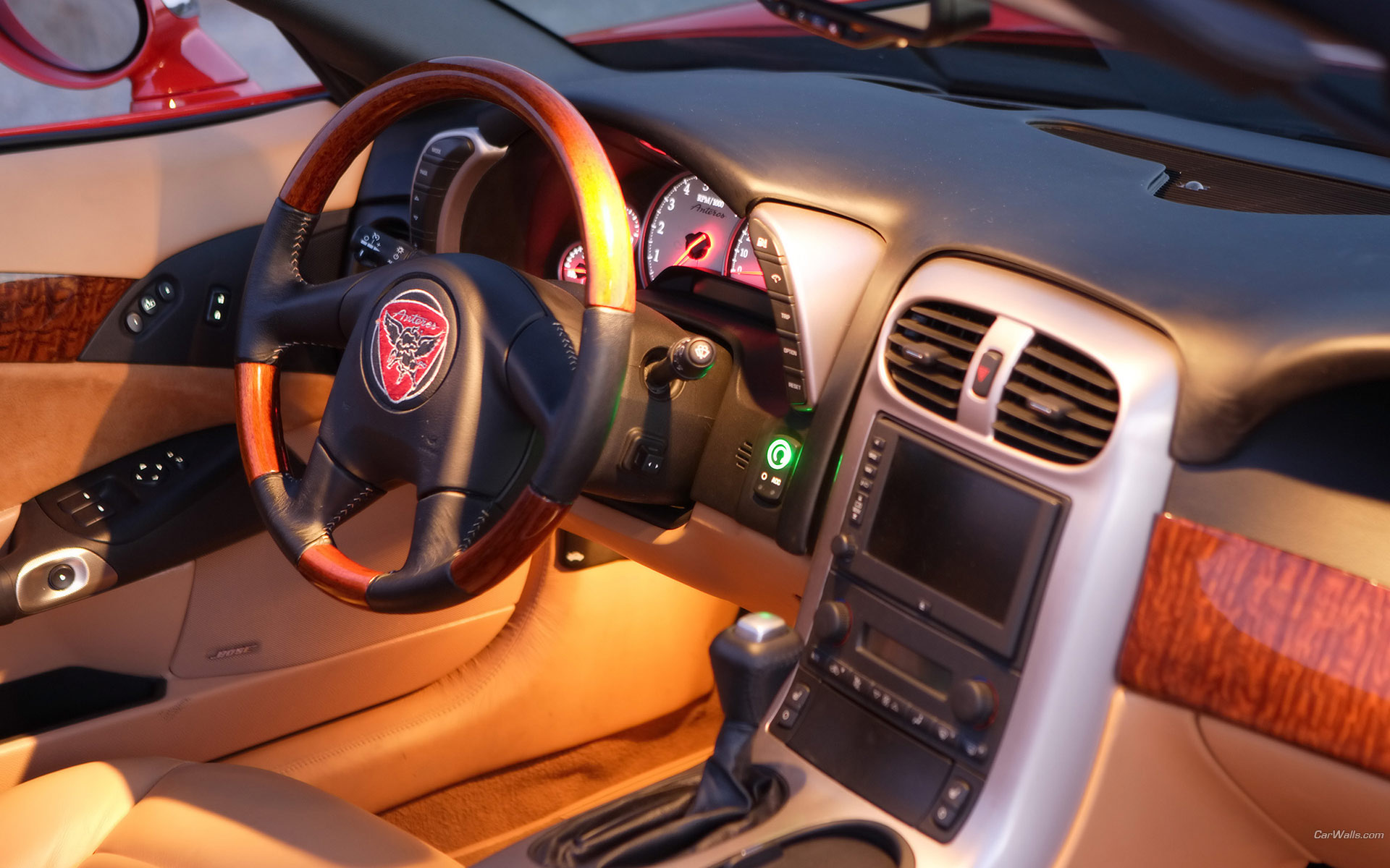 Description: A dashboard of a car with a steering wheel and a dash light on it's dash board and dashboard.