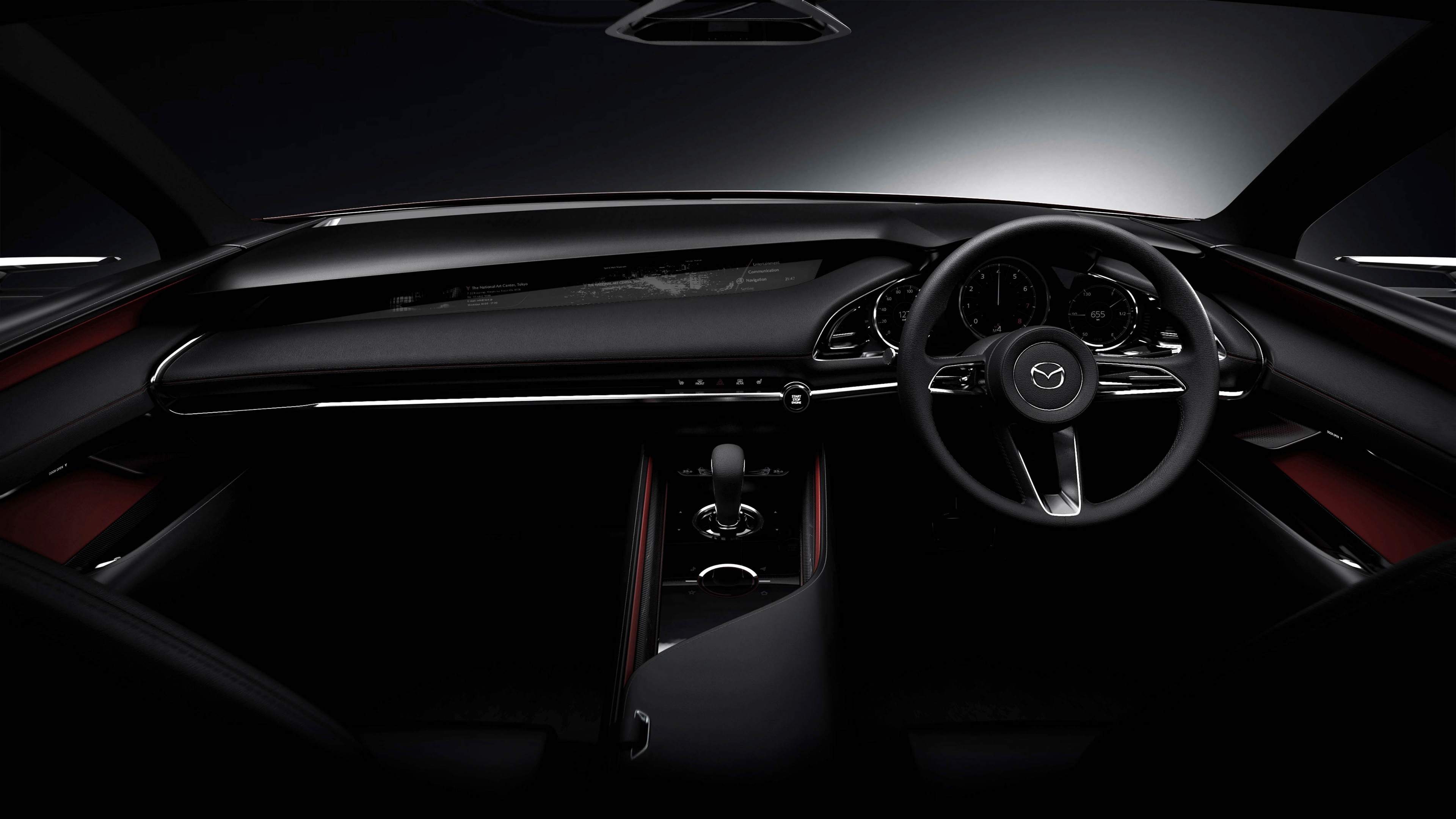 Description: A car dashboard with a steering wheel and dashboard lights on it's side view mirror and dashboard lights on the dashboard.