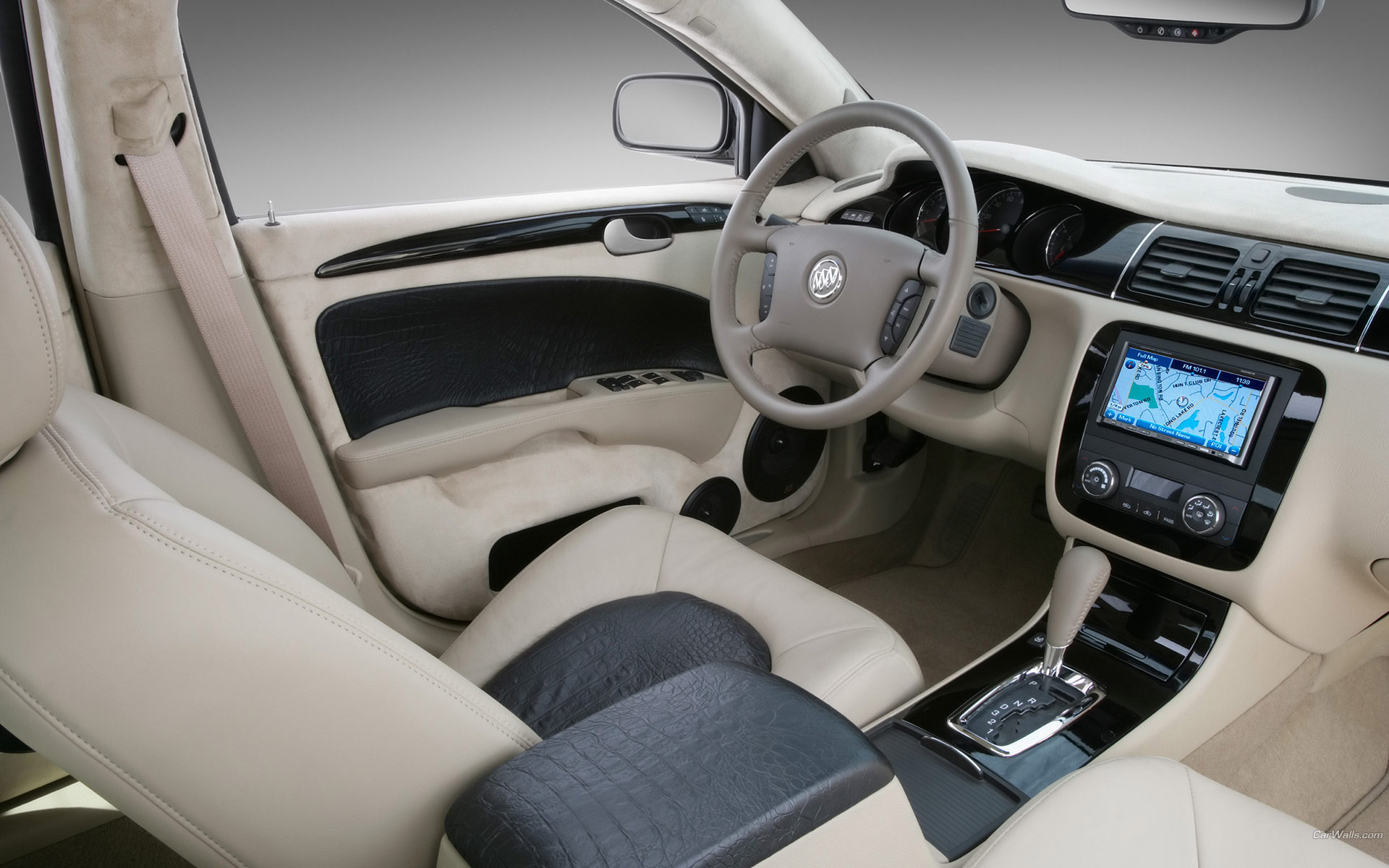 Description: A car with a dashboard and a steering wheel and a dash board and a dash board with a digital display.