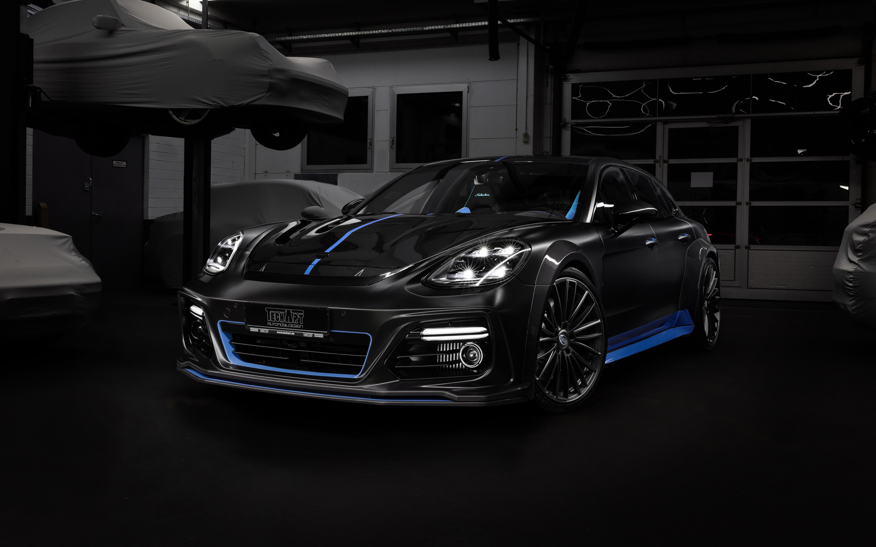 Description: A car parked in a garage with a car in the background and a car in the foreground with a car in the background.