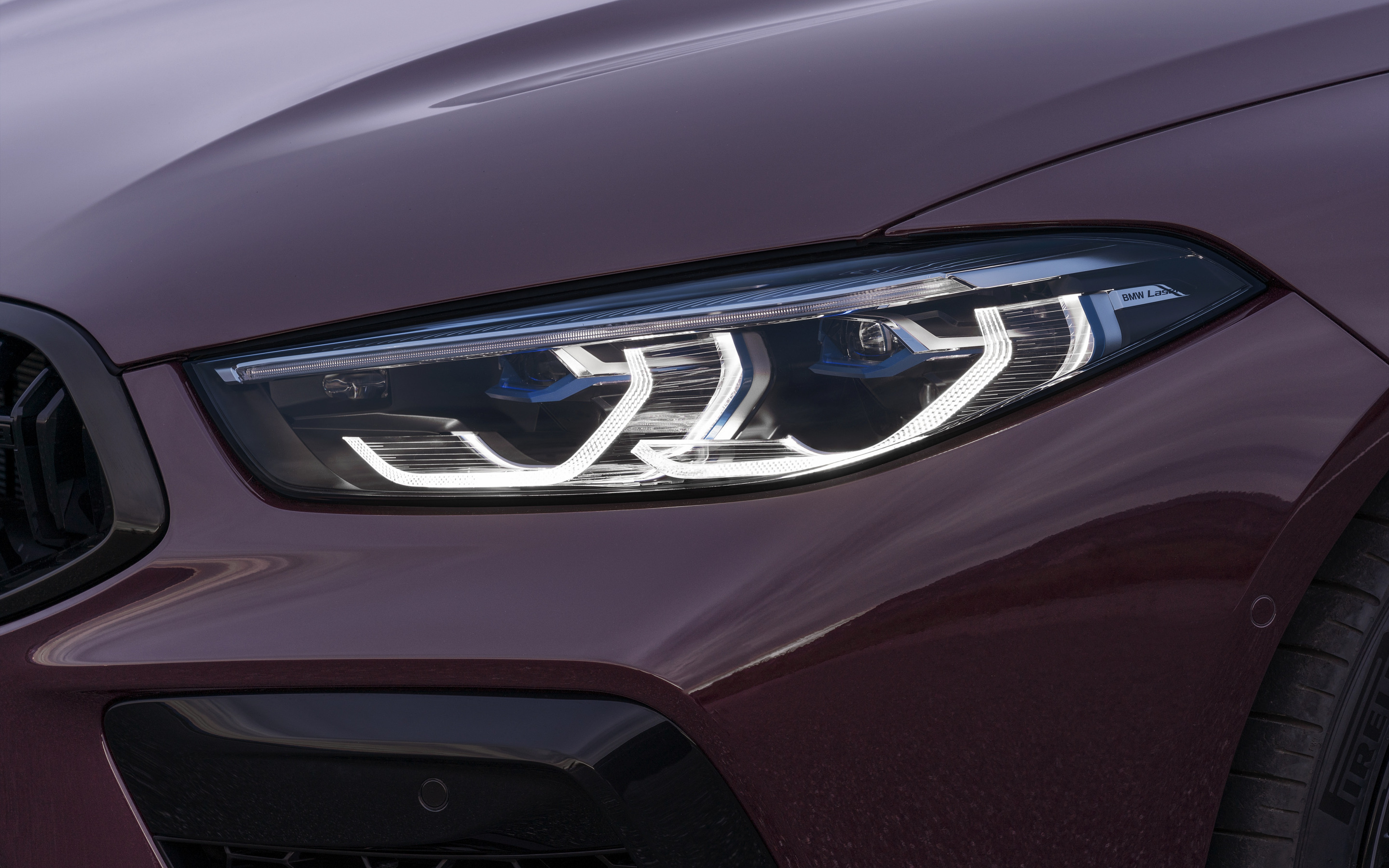 Description: A close up of a car's headlight and grilles on a car's front bumper.