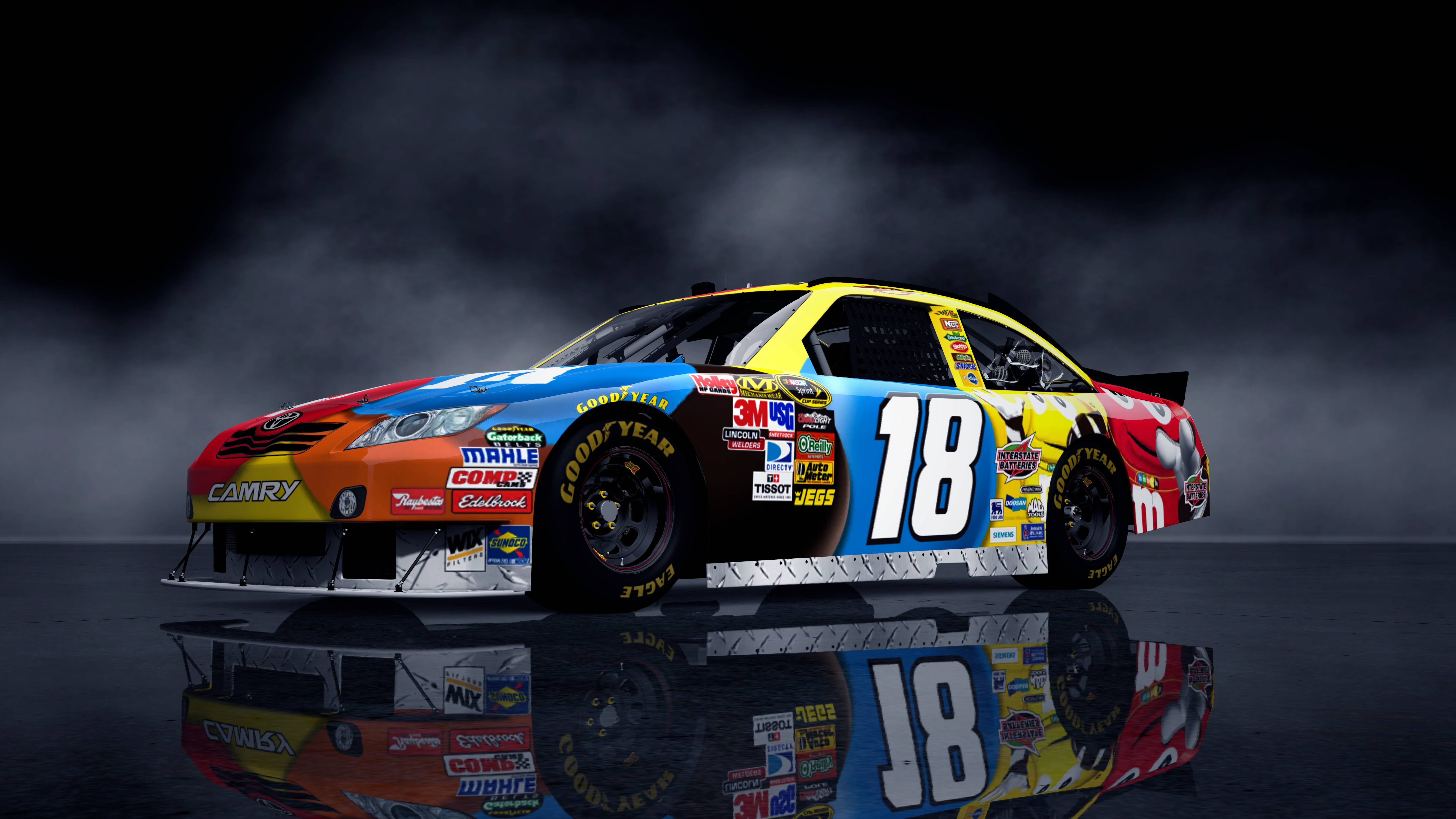 Description: A car with a number on it is shown in a dark room with smoke coming from the back of it.