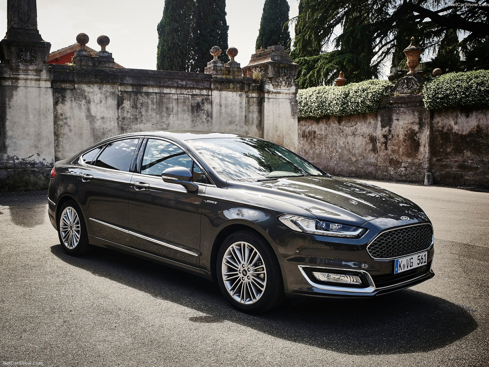 Description: A car parked in front of a stone wall and a stone wall behind it with a clock on it.