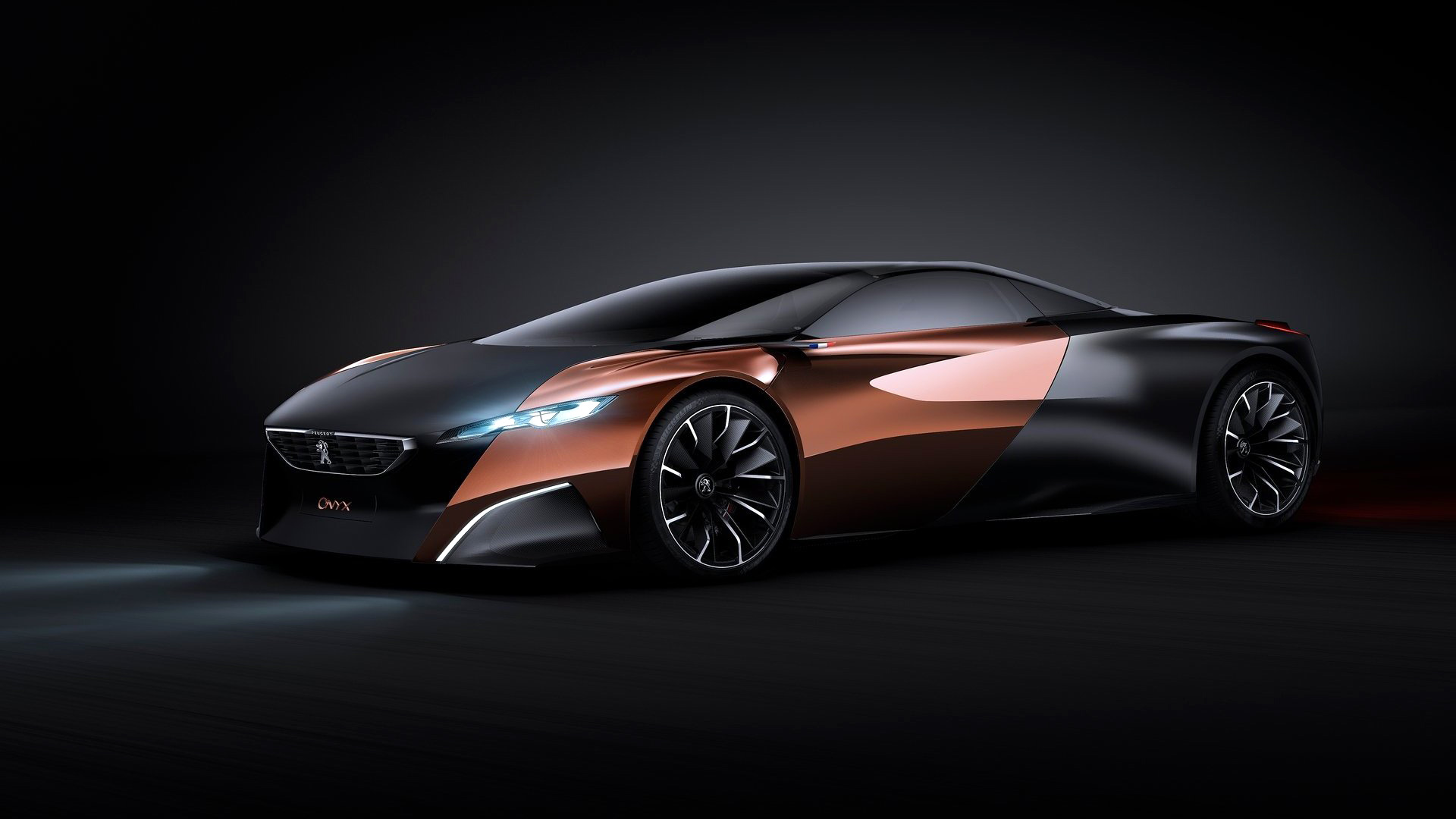 Description: A car with a black background and a red stripe on it's side.