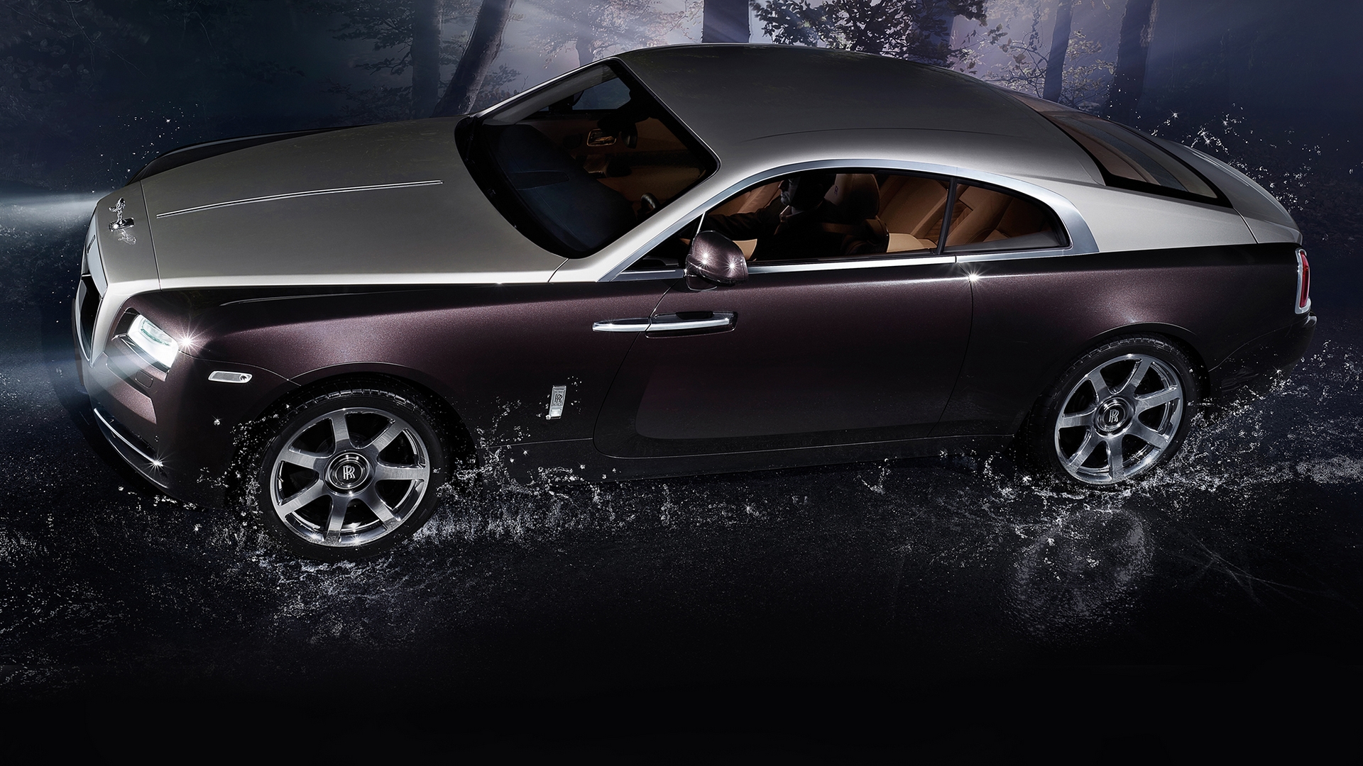 Description: A car is shown in a dark room with water splashing around it and the door open and the driver inside.