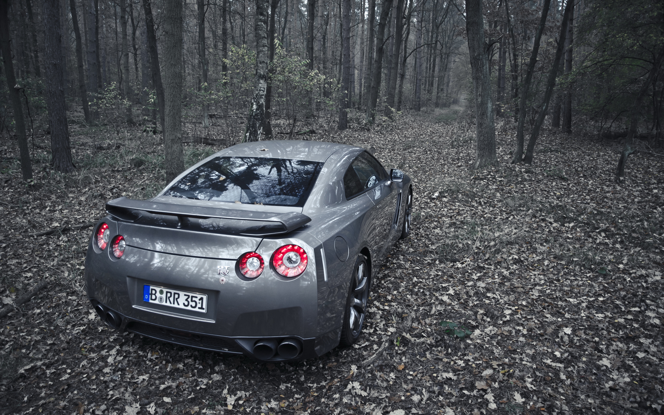 Description: A car that is sitting in the woods with its hood up and the hood up on it's headlight.