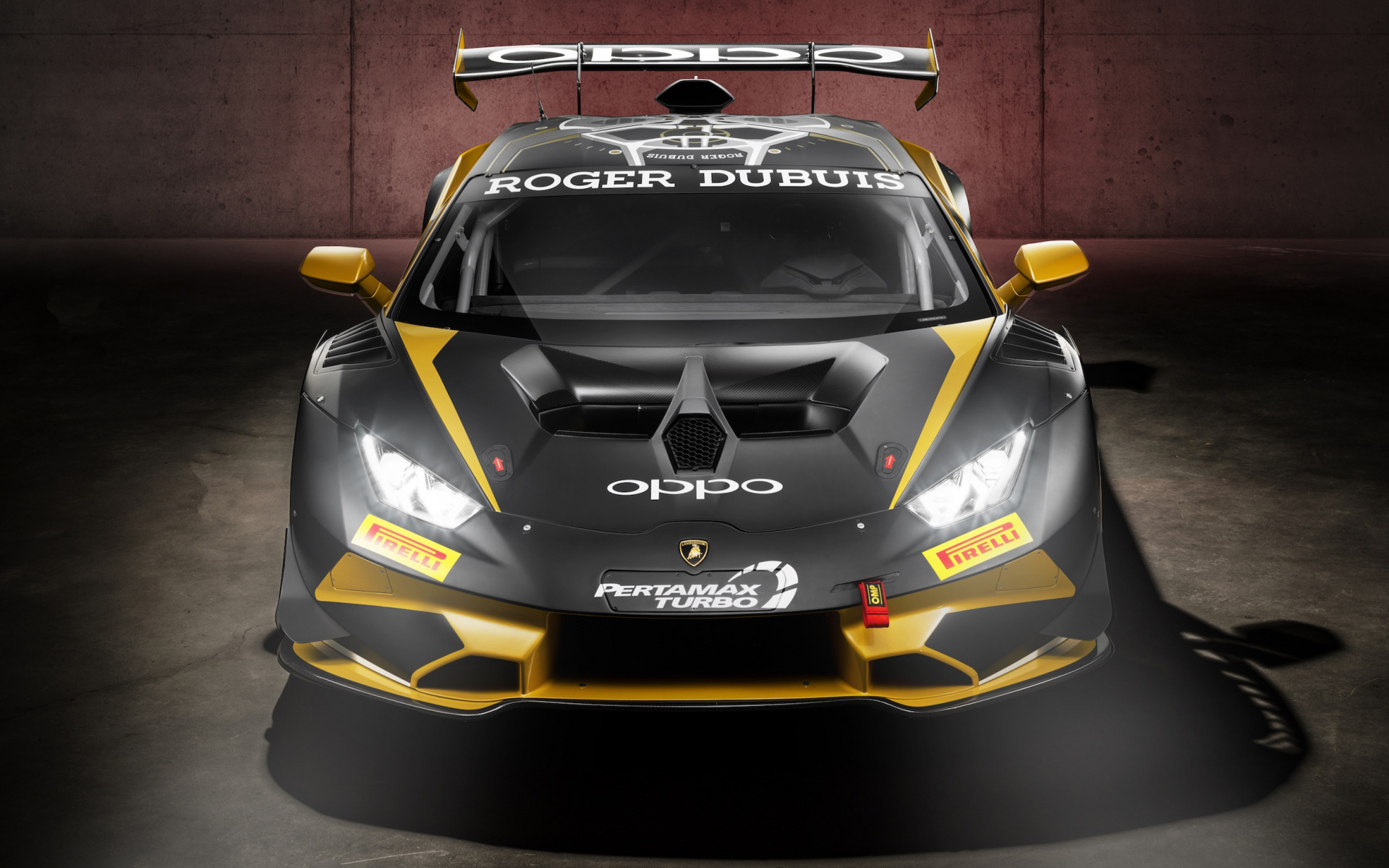 Description: A car with a yellow and black stripe on it's hood and hood up.