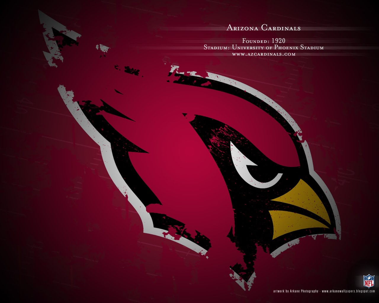 Description: A cardinal logo on a red background with music notes in the background and a black background with a white and red band.