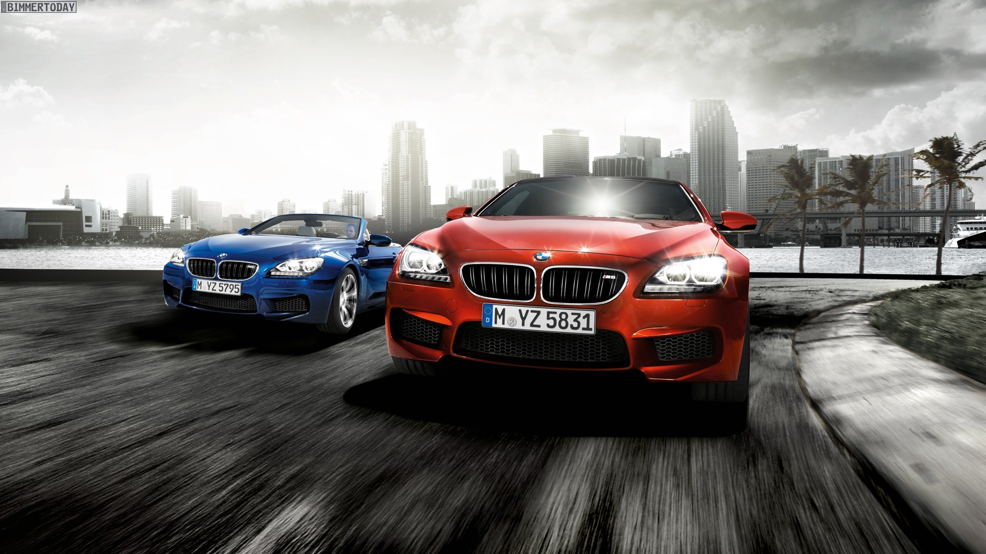 Description: Two cars driving down a road near a city skyline with skyscrapers in the background and a cloudy sky.