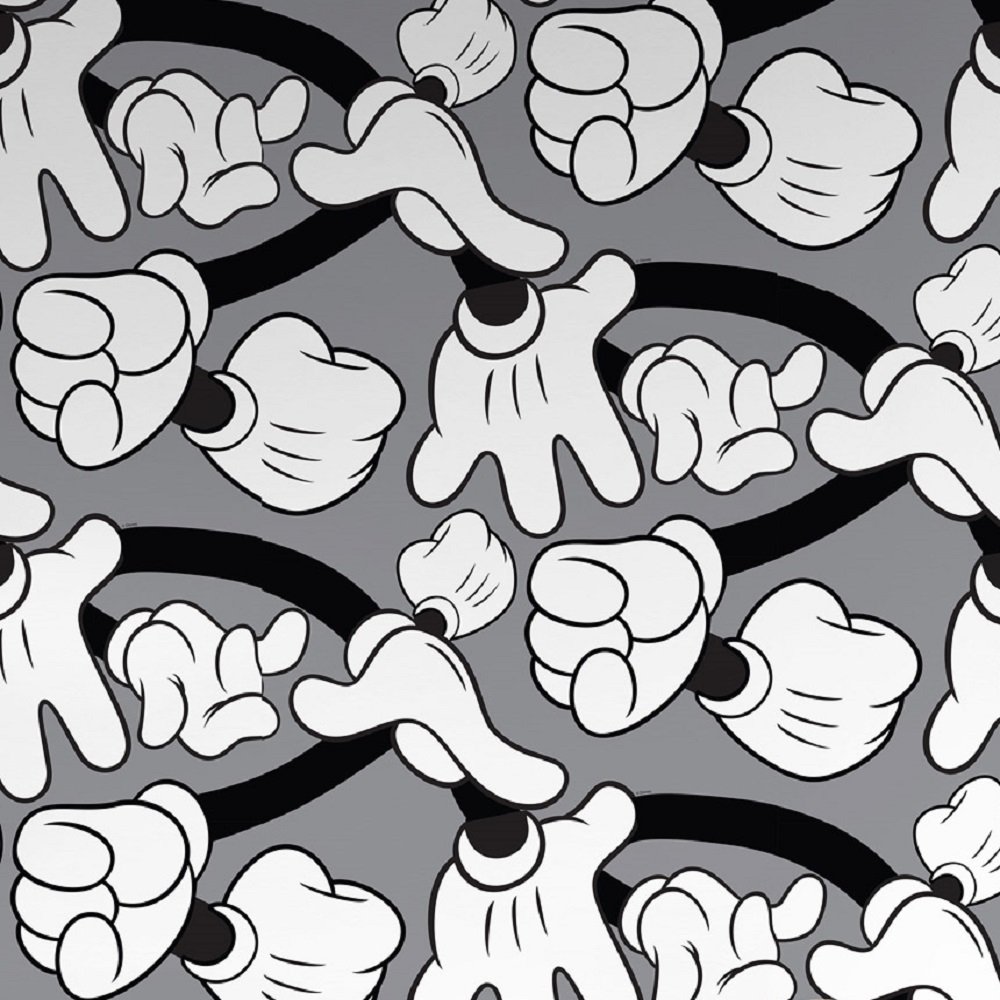 Description: A black and white pattern of cartoon characters with different expressions and sizes of hands and feet.