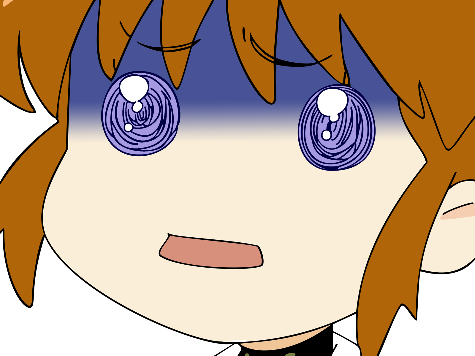 Description: A cartoon boy with blue eyes and a tie on his neck and a black shirt on his shirt and a green tie.