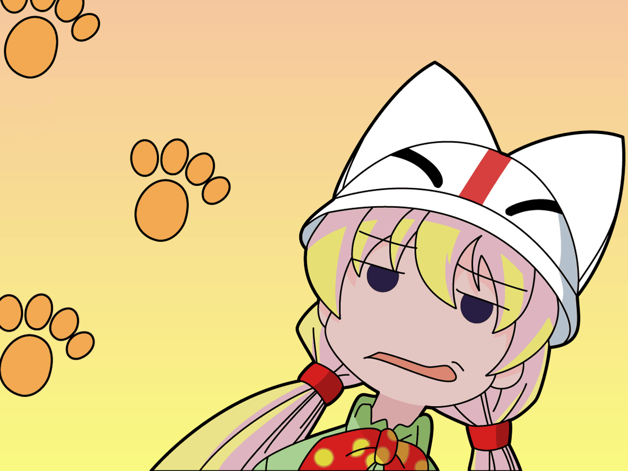Description: A cartoon character with a cat's paw print on the background of a yellow background with a cat's paw print.