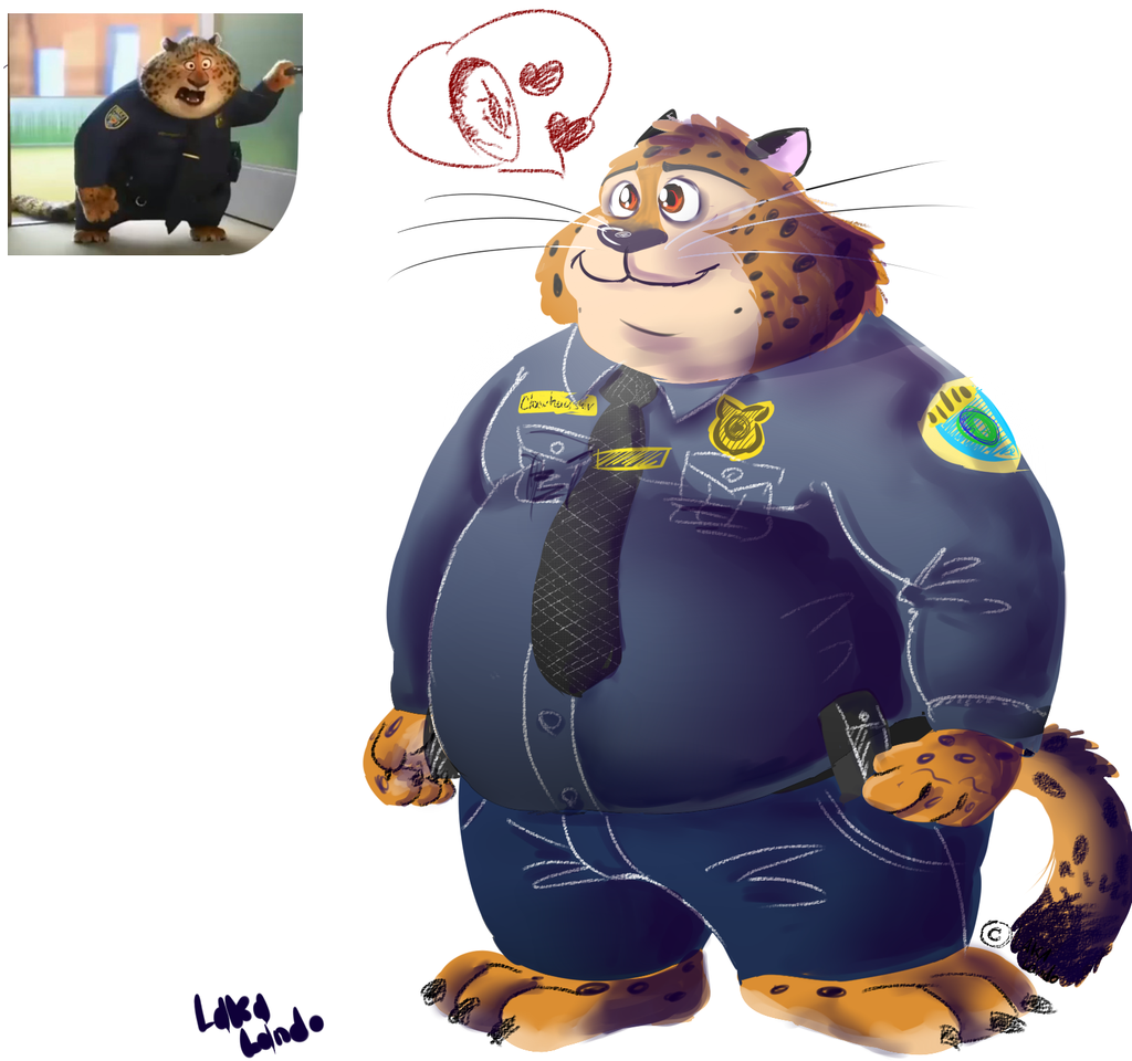 Description: A cartoon of a cat dressed as a police officer with a thought bubble above his head and a cartoon of a cat in a police uniform.