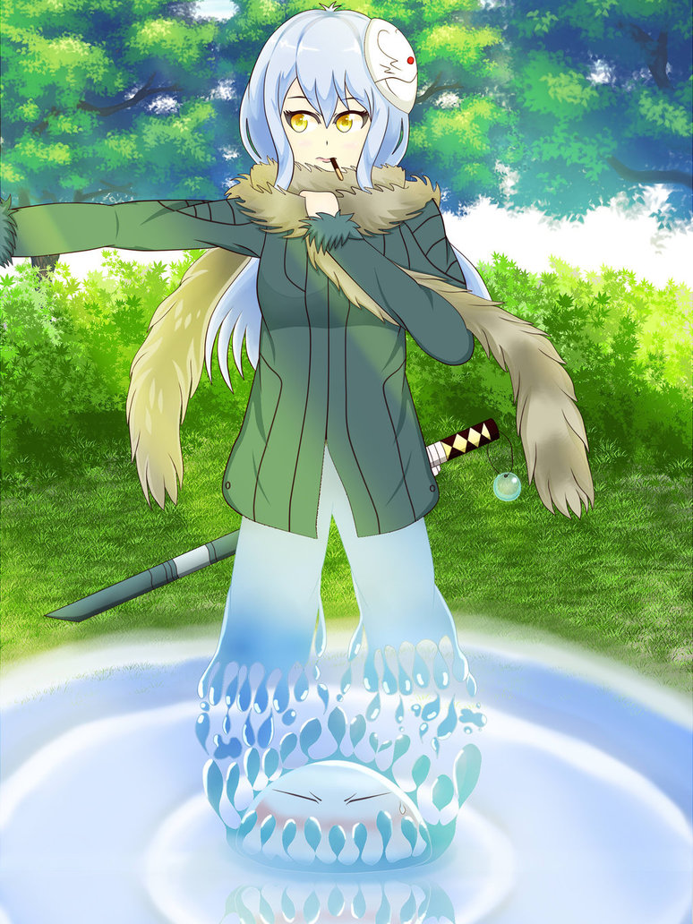 Description: A cartoon character with a cat on his shoulder and a hat on his head.