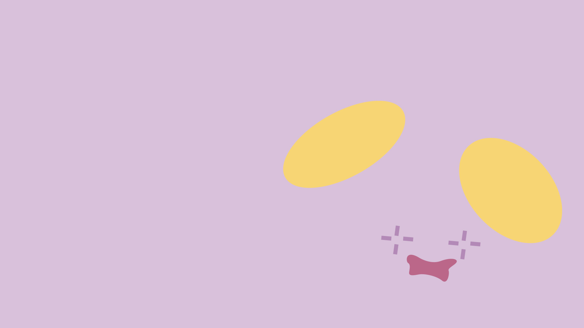 Description: A cartoon character with a dog on a purple background with a yellow circle above it that says.