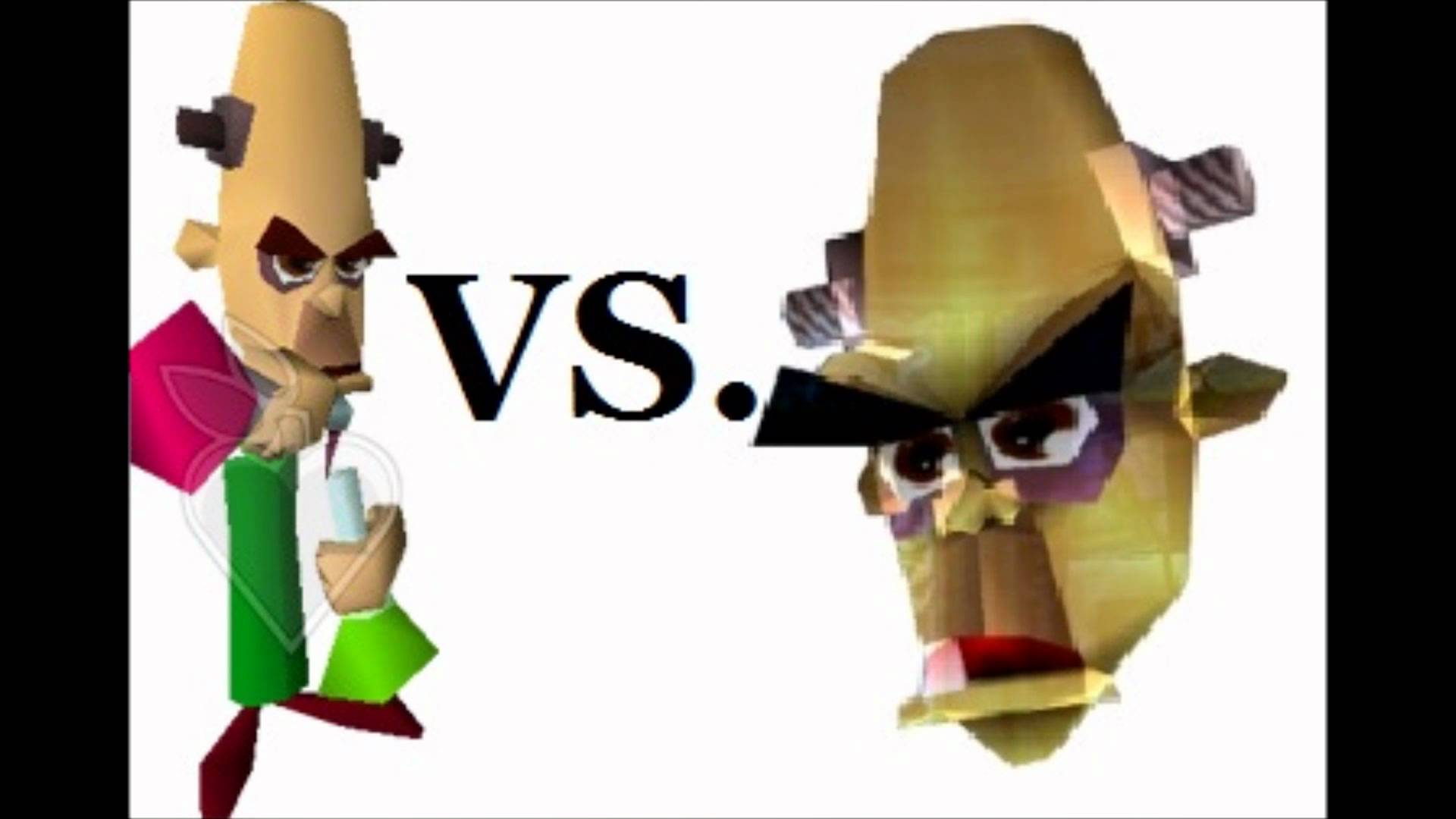 Description: A cartoon character and a cartoon character with a face on each side of the image.