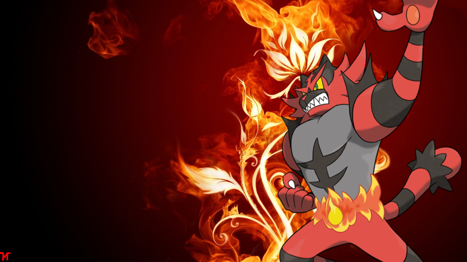 Description: A cartoon character is in the middle of a fire with flames around him and a black background with a red and yellow flame.