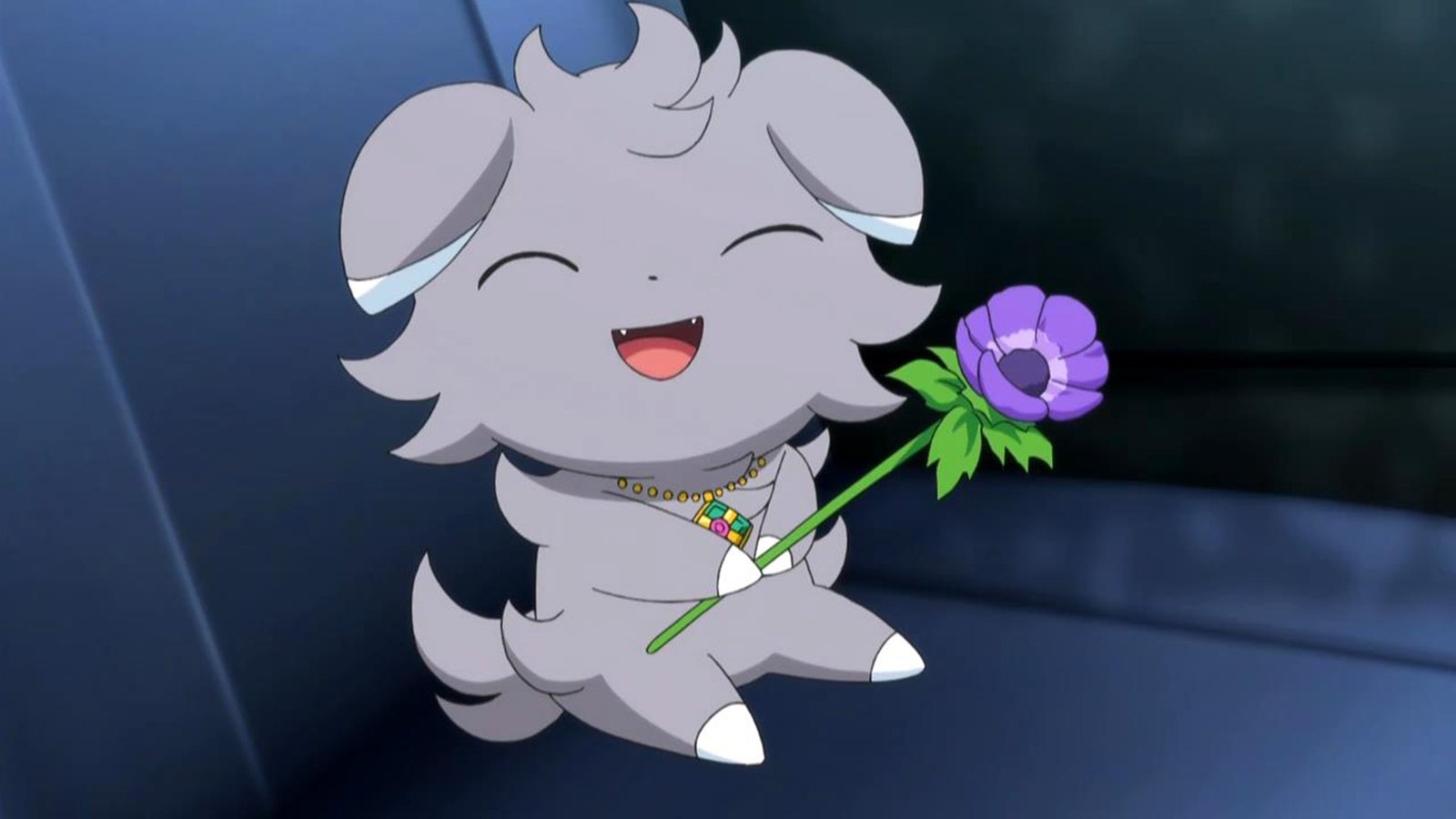 Description: A cartoon character holding a flower in her hand and laughing at the camera while sitting in a car seat.