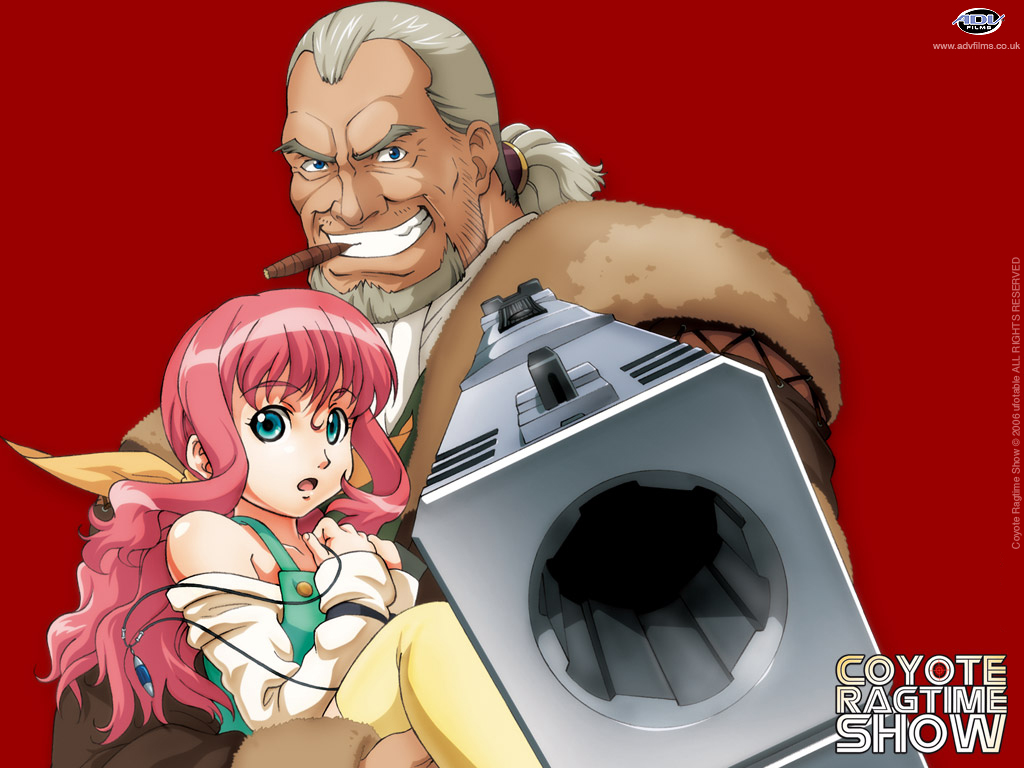 Description: A cartoon character holding a girl next to a washing machine with a man in the background with a cigarette.
