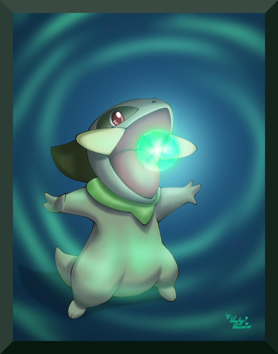 Description: A cartoon character with a glowing green eye and a green hat on his head.