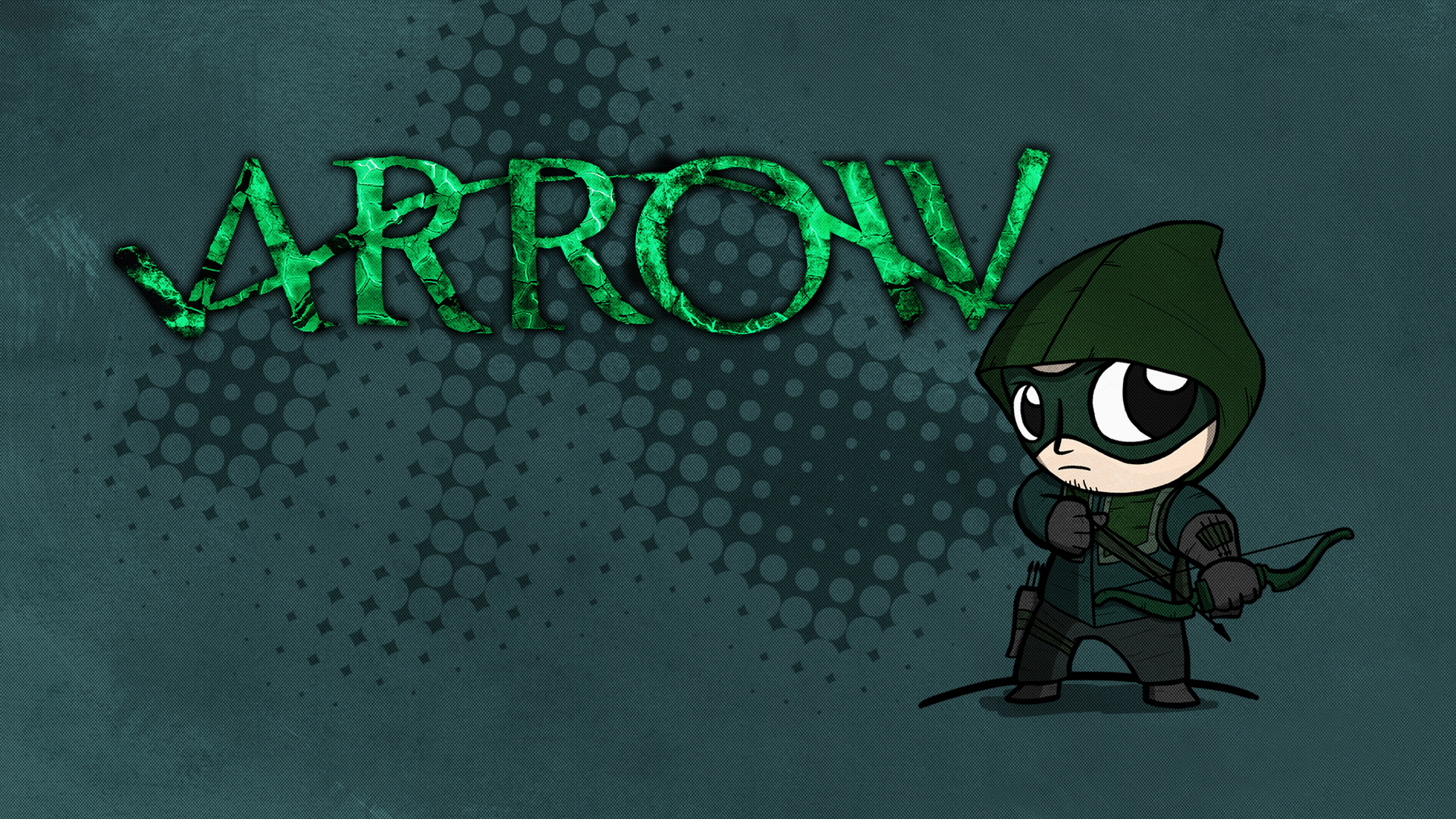 Description: A cartoon character with a green arrow on his head and a green arrow on his chest.