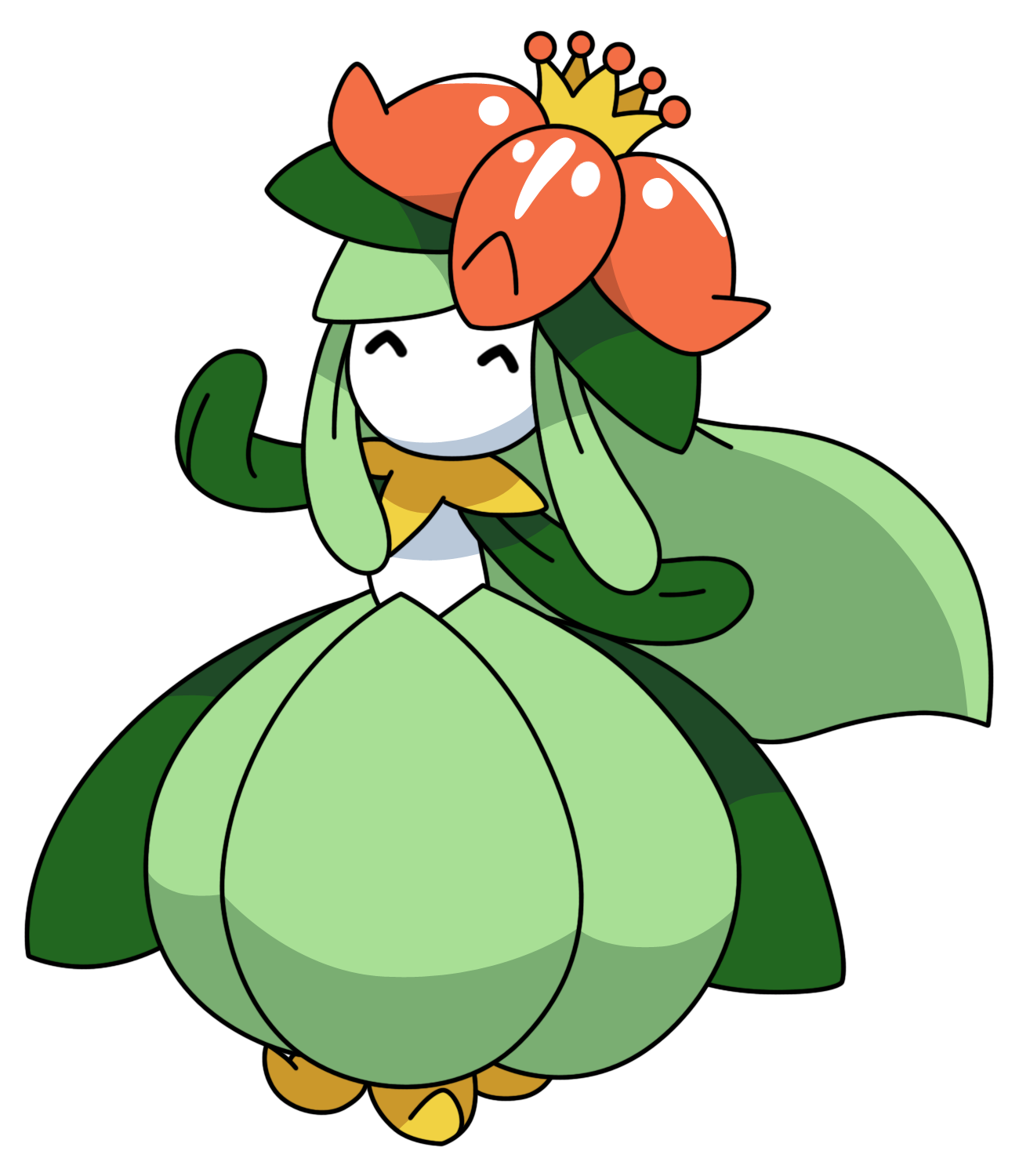 Description: A cartoon character with a green dress and a red hat on her head and a green cape on her head.