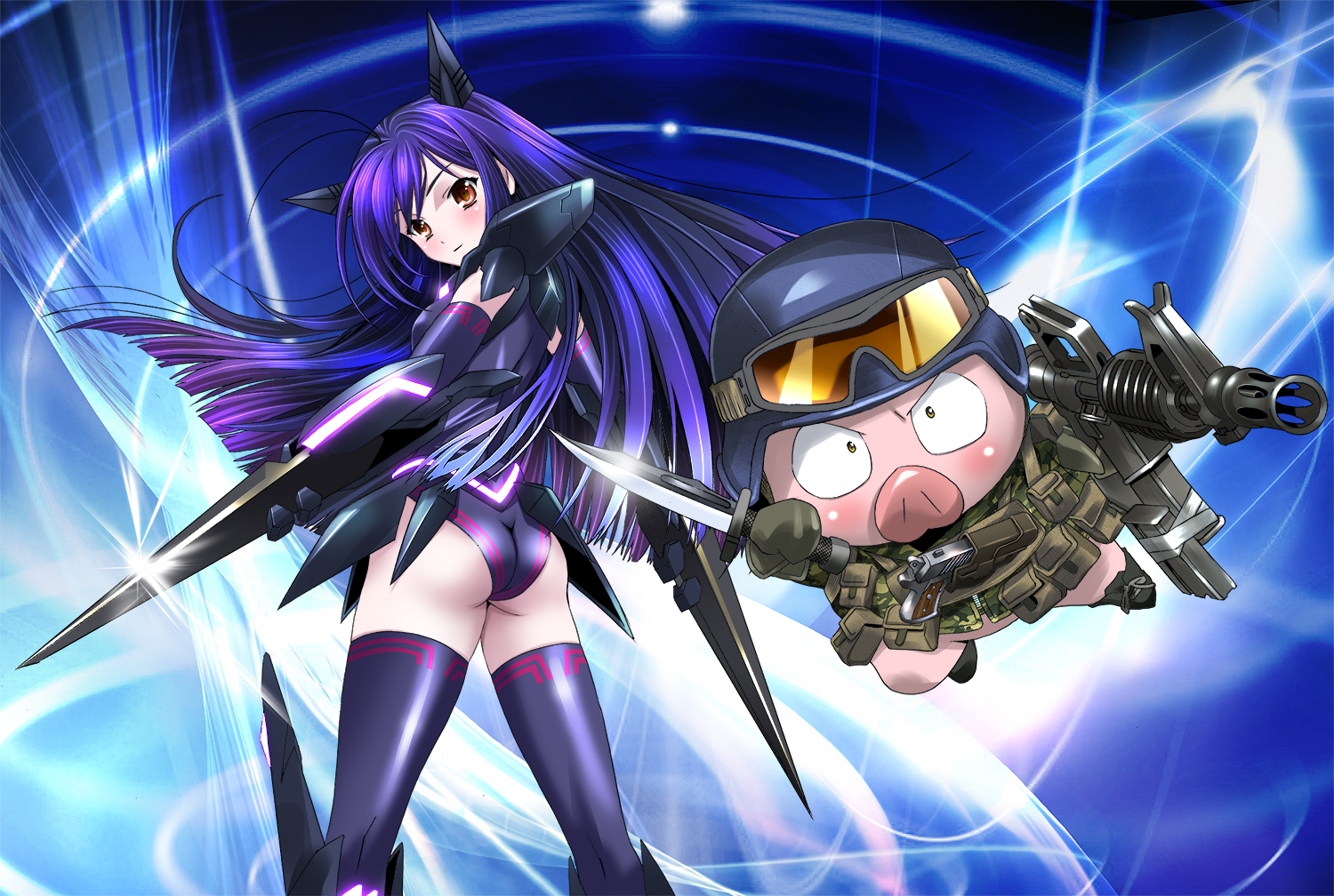 Description: A cartoon character with a gun and a helmet on.
