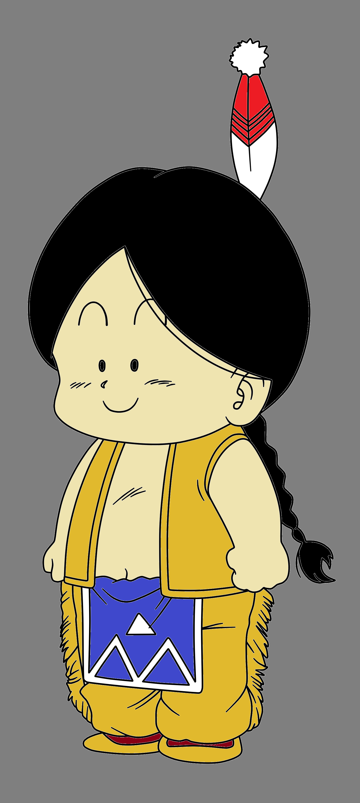 Description: A cartoon character with a hat and a blue bag on his head and a yellow vest on his body.