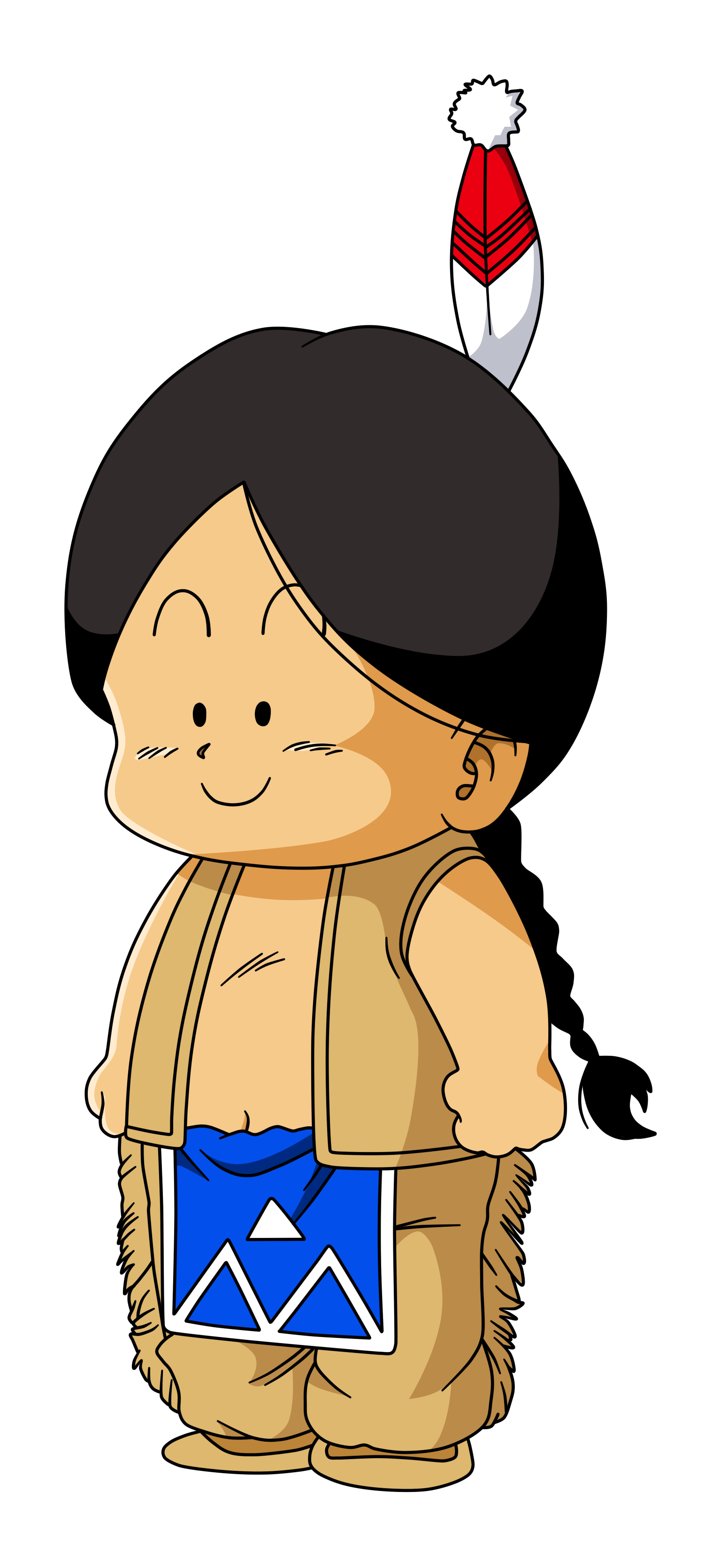 Description: A cartoon character with a hat and a blue and white flag on his chest and a black cap on his head.