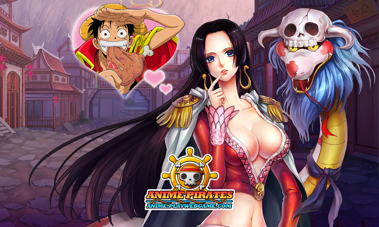 Description: A cartoon character with a skull and a pirate girl in a red dress and a skull in the background.