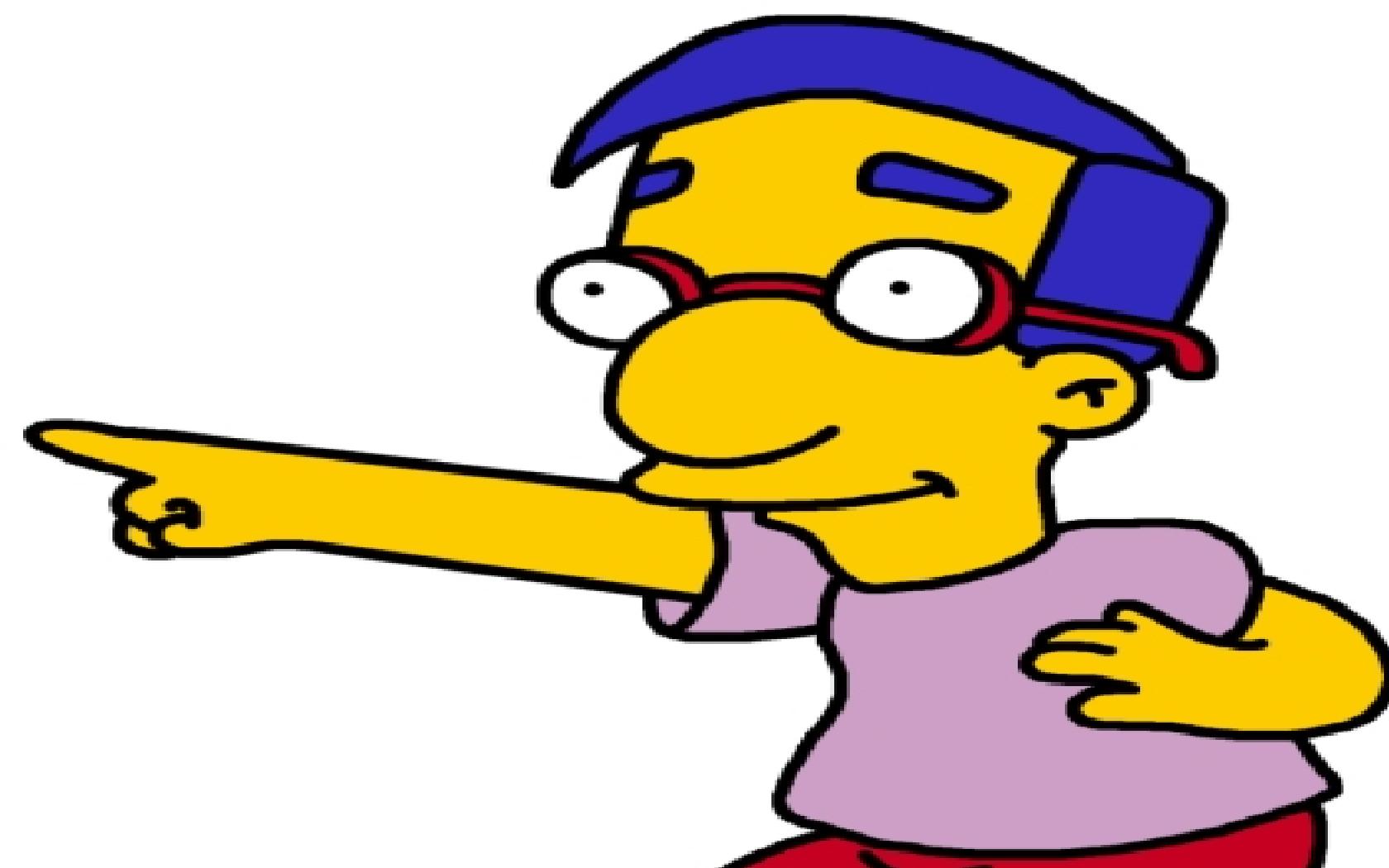Description: A cartoon character pointing at something with a finger in his hand and a hat on his head and glasses on.
