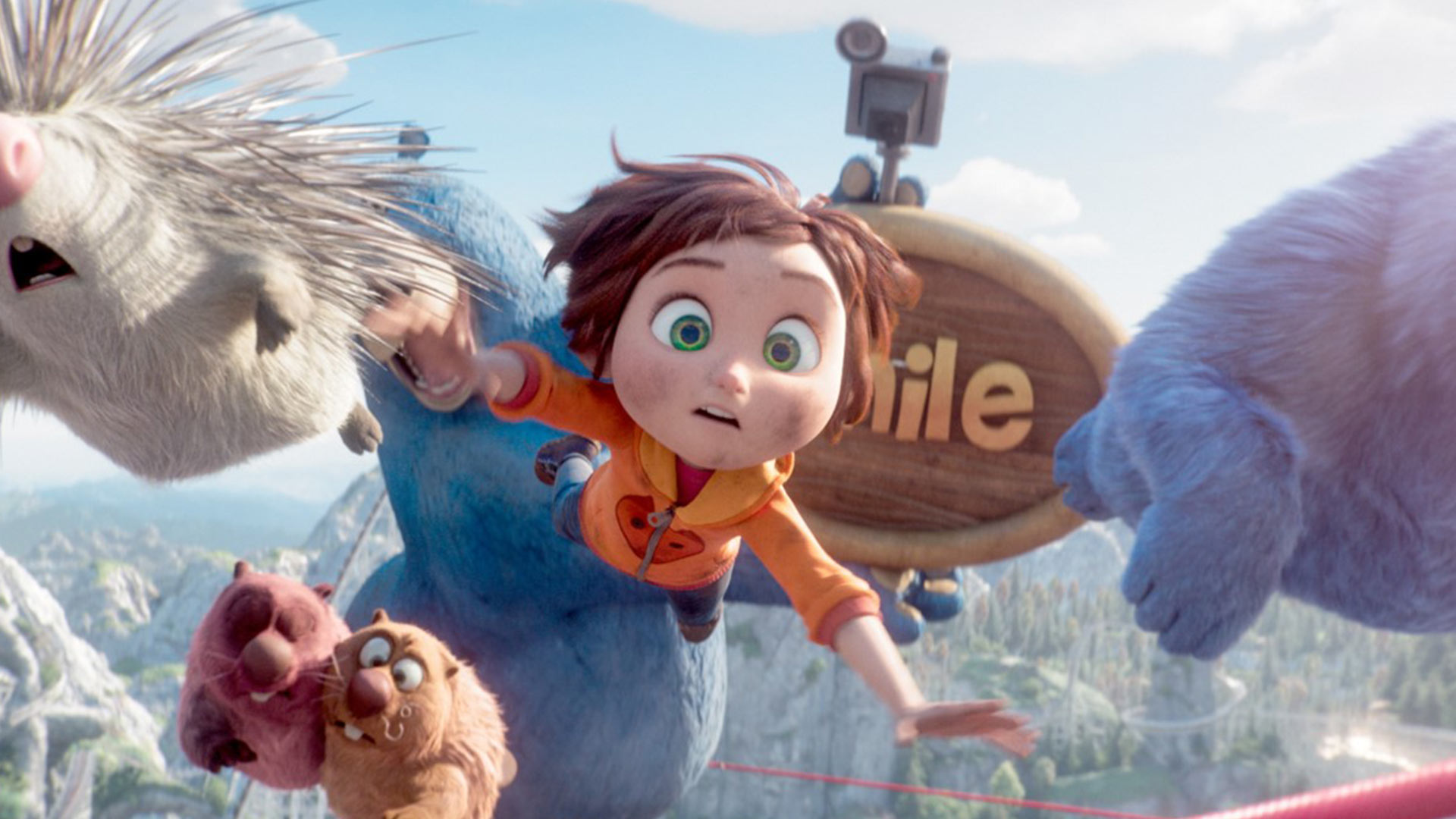 Description: A cartoon character is being pulled by a cat and a hedgehog in a scene from the movie the secret life of pets.