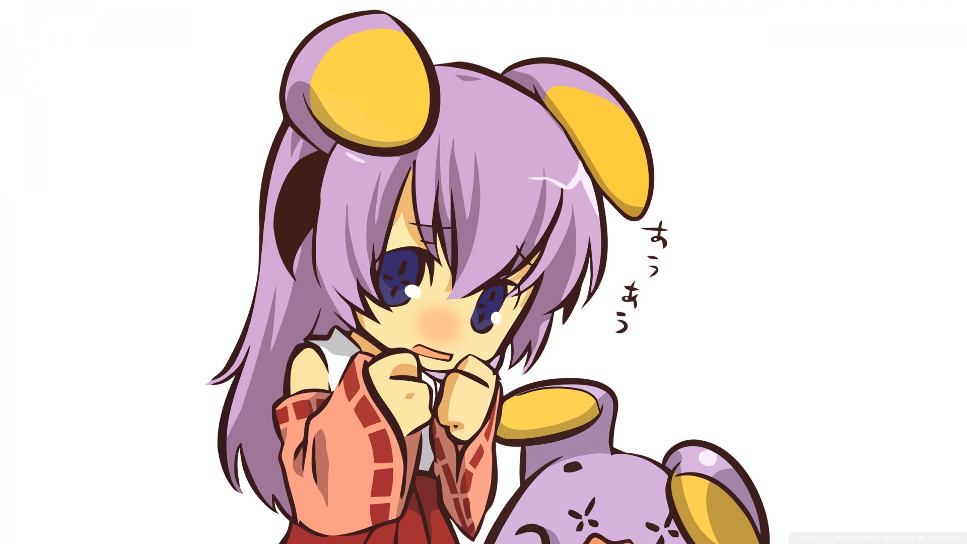 Description: A cartoon character with purple hair and a cat costume.