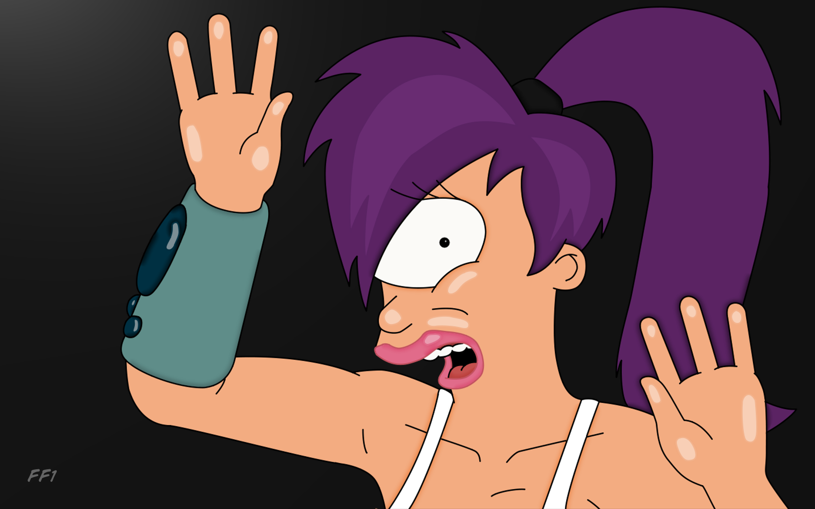 Description: A cartoon character with purple hair holding up two fingers and a hand up in the air with a peace sign.