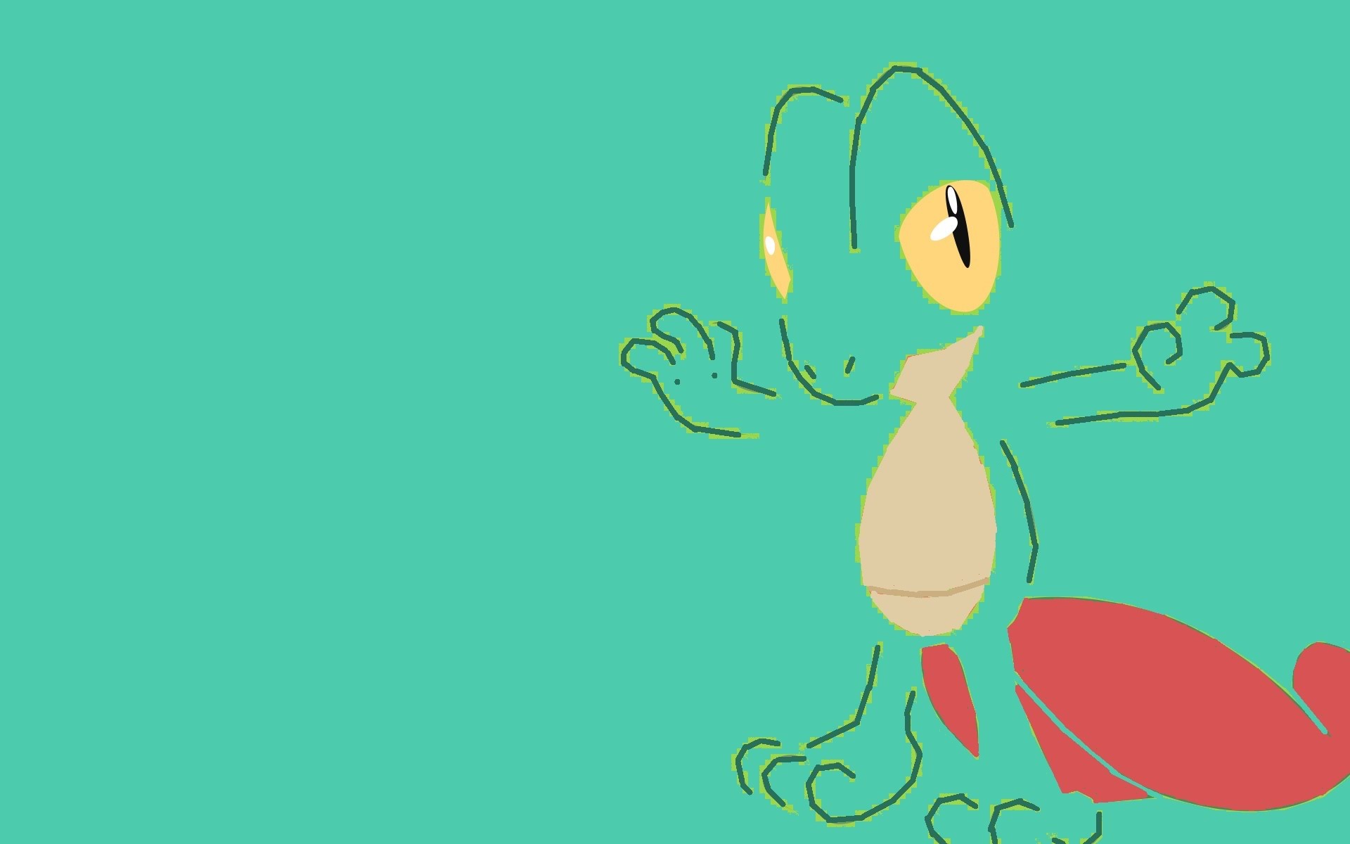 Description: A cartoon character with a red object in his hand and a green background with a yellow outline on it.